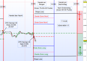 Die Long-Position werde ich nun zunächst als Joker handeln. Dabei dokumentiere ich für mich fortlaufend, welche weiteren Joker ich unterhalb von 24.400, eventuell zwischen 24.400 und 24.500, und gegebenenfalls auch darüber eröffne. Darüber präferiere ich Short-Positionen am Nachmittag. Weitere Joker werde ich jeweils gemäß meiner Trading-Strategie handeln.