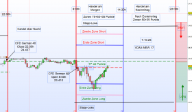 Die Long-Position werde ich nun zunächst als Joker handeln. Dabei dokumentiere ich für mich fortlaufend, welche weiteren Joker ich unterhalb von 24.400, eventuell zwischen 24.400 und 24.500, und gegebenenfalls auch darüber eröffne. Darüber präferiere ich Short-Positionen am Nachmittag. Weitere Joker werde ich jeweils gemäß meiner Trading-Strategie handeln.