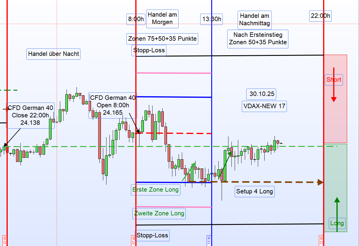 Setup1. Zone2. ZoneStop-LossBezugShort24 24024 29024 325+75 / +50 / +35 über EröffnungLong24 06324 01323 978−75 / −50 / −35 unter Schluss 22h -