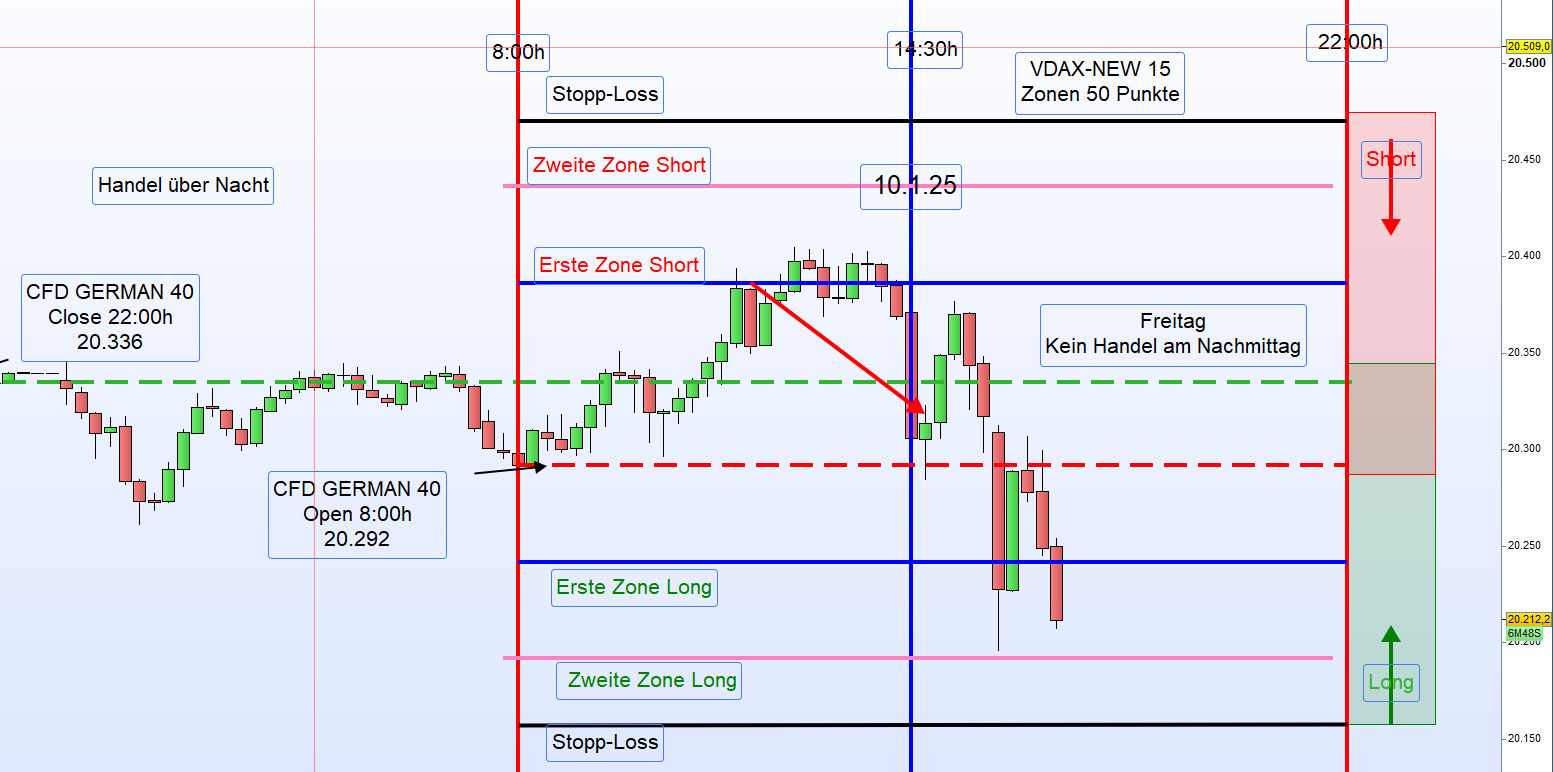 Ergebnis des HandelstagsVormittag: Mit der Aufwärts-Gap konnten 40 Punkte Gewinn erzielt werden.