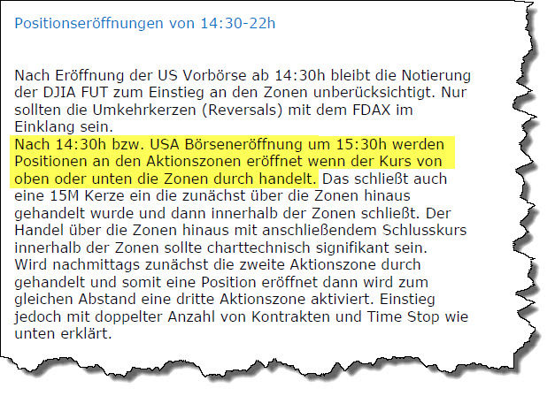 Eigentlich sollte es heißen so wie in der FDAX-TRADING-STRATEGIE formuliert Kriterien der FDAX-TRADING-STRATEGIE. Dies bedeutet, dass je nach Zyklus eine Dauershortposition oder eine