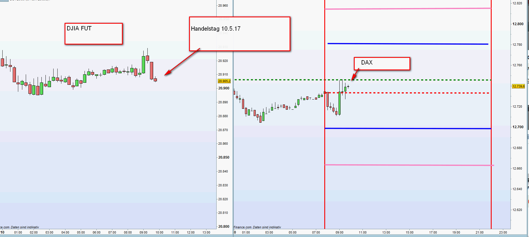 1. Obwohl DJIA FUT weiter fielen beharrte FDAX auf dem gleichen Niveau