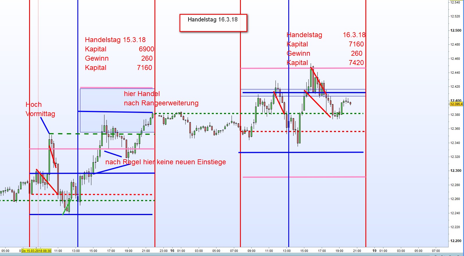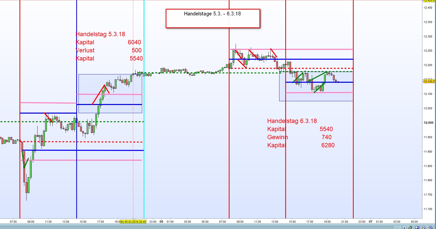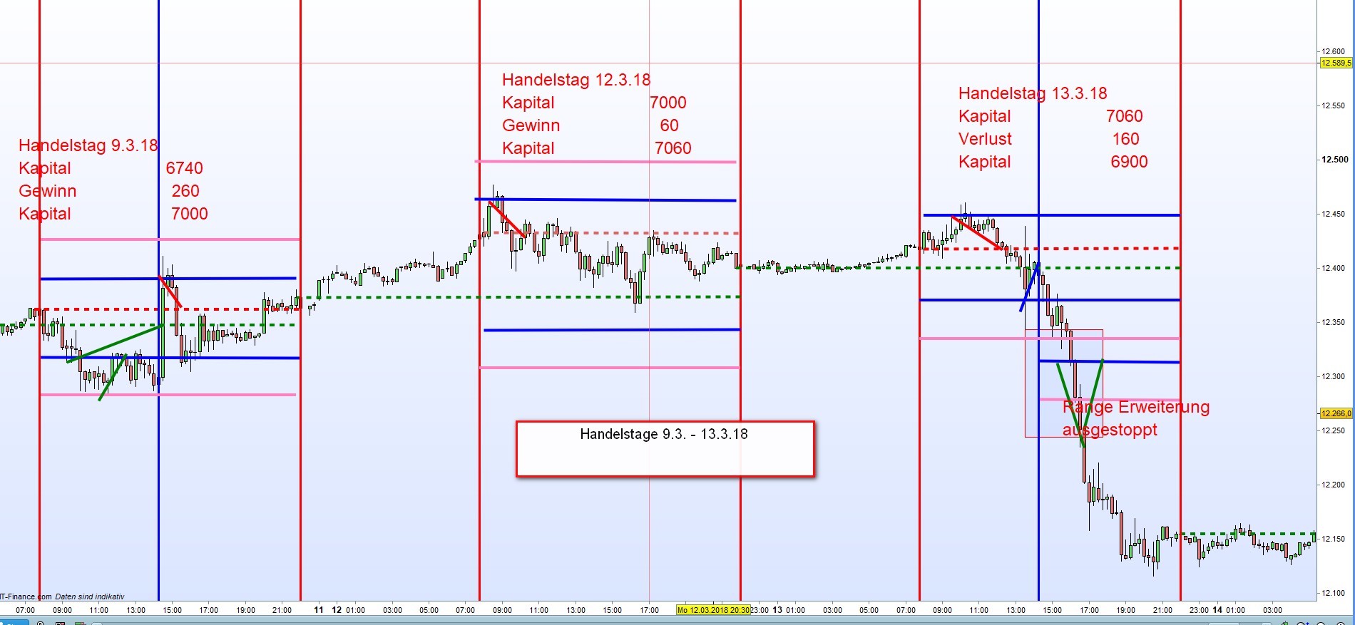 In der Demo Version von IG Markets ab 8h Limitorders gemäß dem Regelwerk eingeben und abarbeiten.