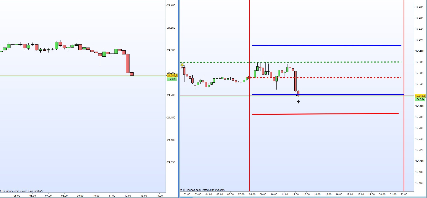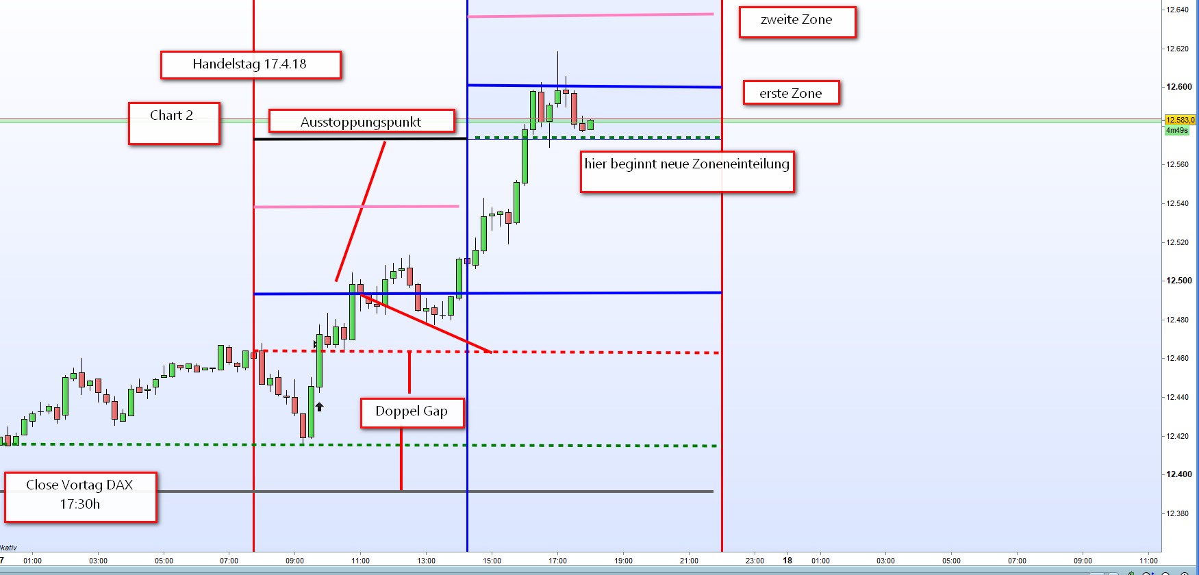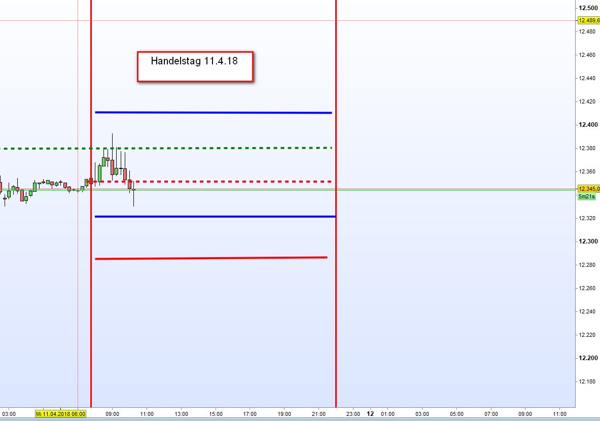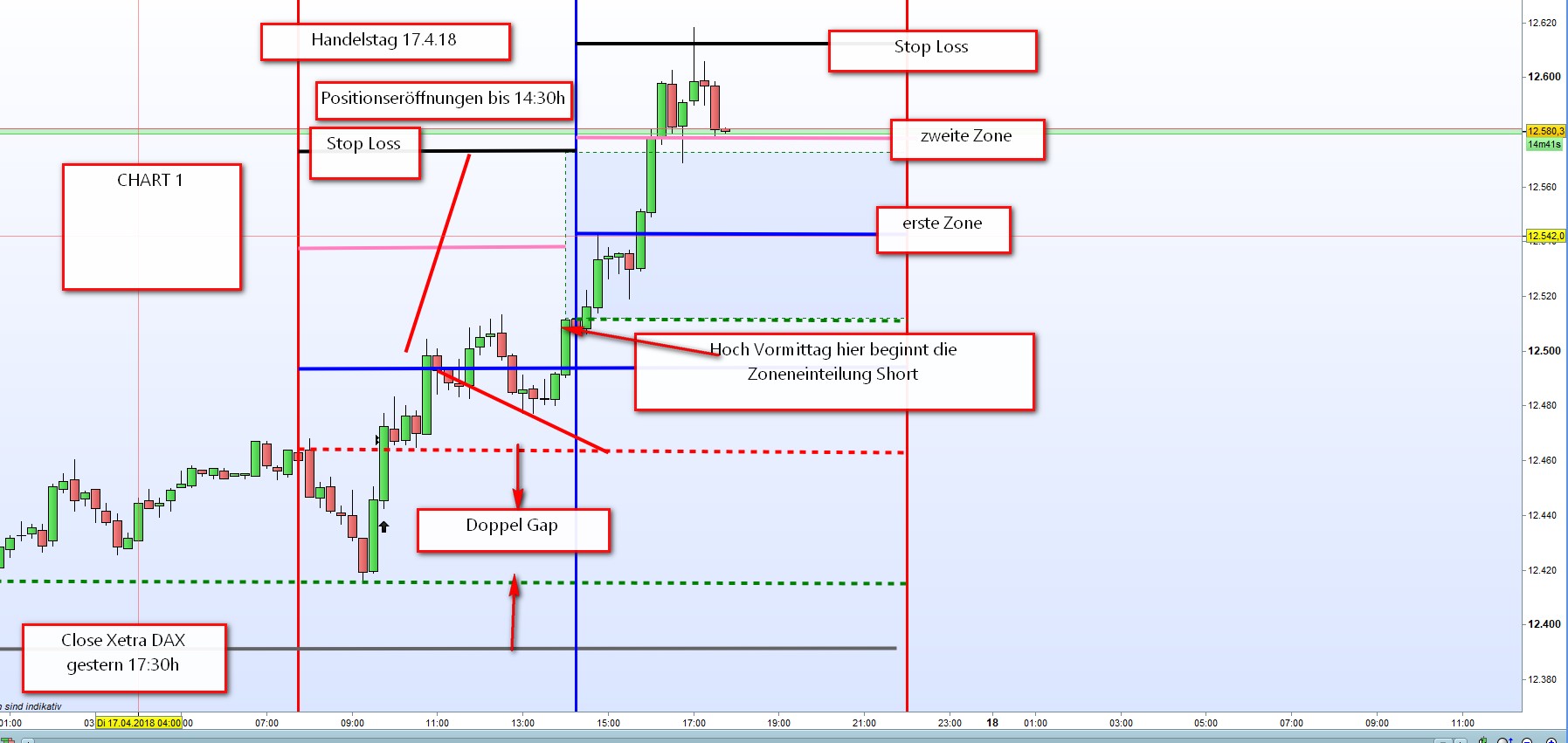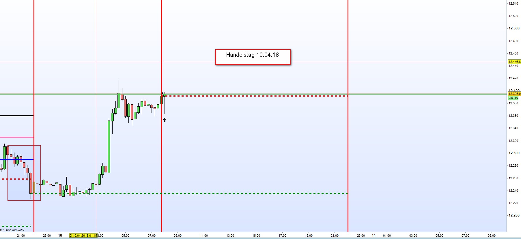 Entweder läuft diese Position in den Gewinn, wird ausgestoppt oder um 22:00h glatt gestellt. Nun sie wurde ausgestoppt. Am Ausstoppungspunkt wird dann die Range Erweiterung in Zonen eingeteilt und mit Glück den Verlust wieder ausgeglichen.