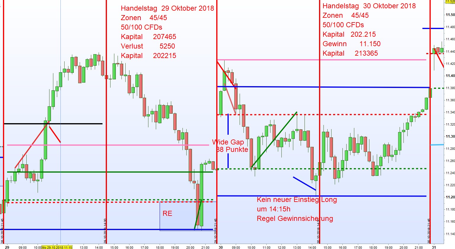Zonenlinien sind Orientierungspunkte zur Positionseröffnung Long/Short. Hätten dort heute exakt die Einstiege Short erfolgt, dann wäre die Gesamtposition knapp mit hohem Verlust ausgestoppt worden.