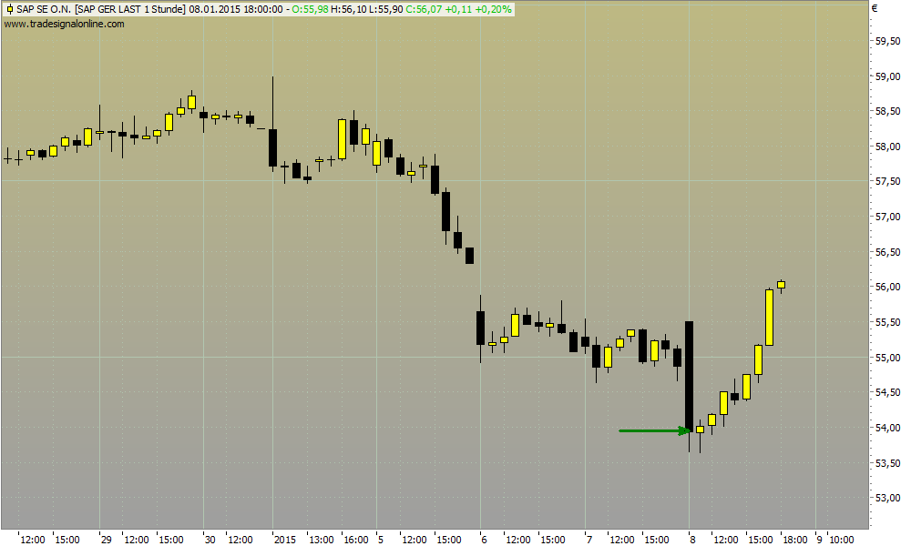 Du hast insofern Recht pips, als dass SAP im Stundenchart ein klarer Downer war, Chart angehängt. Das macht für mich auch insofern einen Großteil des Spaßes an dieser Methode aus, da ich jahrelang nur in intakten Trends gehandelt habe.