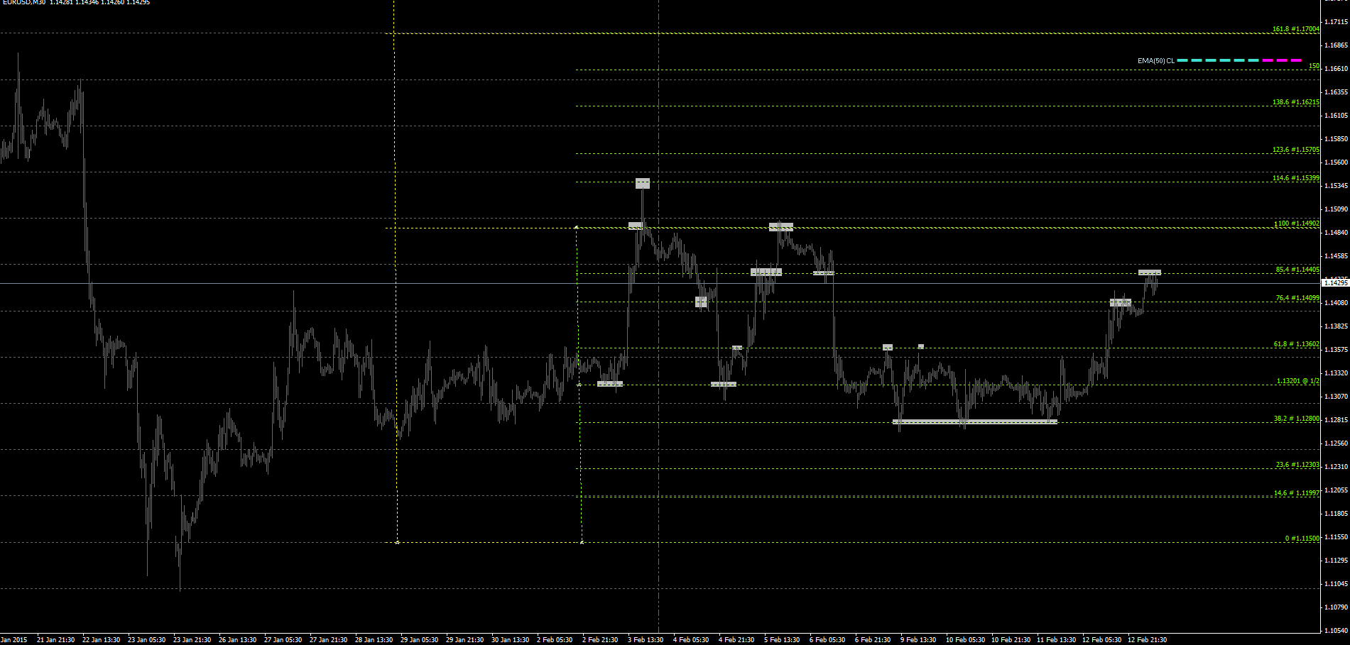 Und wenn ein Chart wie der Beispielchart mit Linien zugekleistert ist, ist es wahrscheinlich Zufall dass die ein oder andere Linie auf Wendepunkte trifft. Wenn man einen Indikator schreiben würde, der per Zufall täglich zehn horizontale Linien auf den Chart werfen würde, würden davon auch täglich 2-3 Linien „funktionieren“.