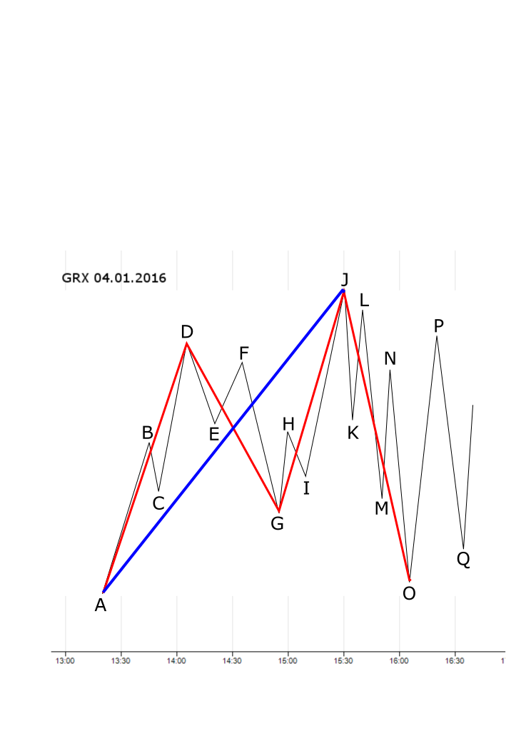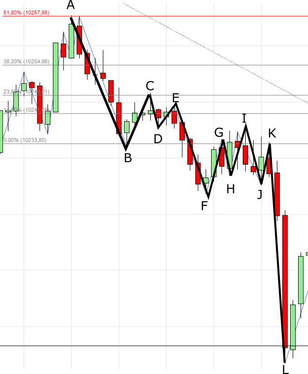 Nehmen wir an, ich gehe hier am Punkt G long, handle ich dann antizyklisch? Könnte man es nicht so sehen, dass der Trend A-D, unterbrochen durch die Korrektur D-G bei G wieder fortgesetzt wird bis Punkt J und erst dort endet? -