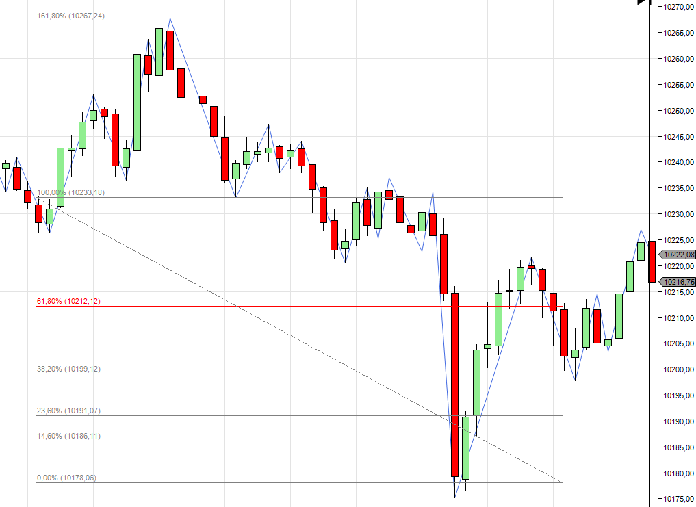 Die Sprungweiten aus dem vorigen Beitrag habe ich hier mithilfe eines Fibo-Retracement-Werkzeugs im Chart dargestellt.
