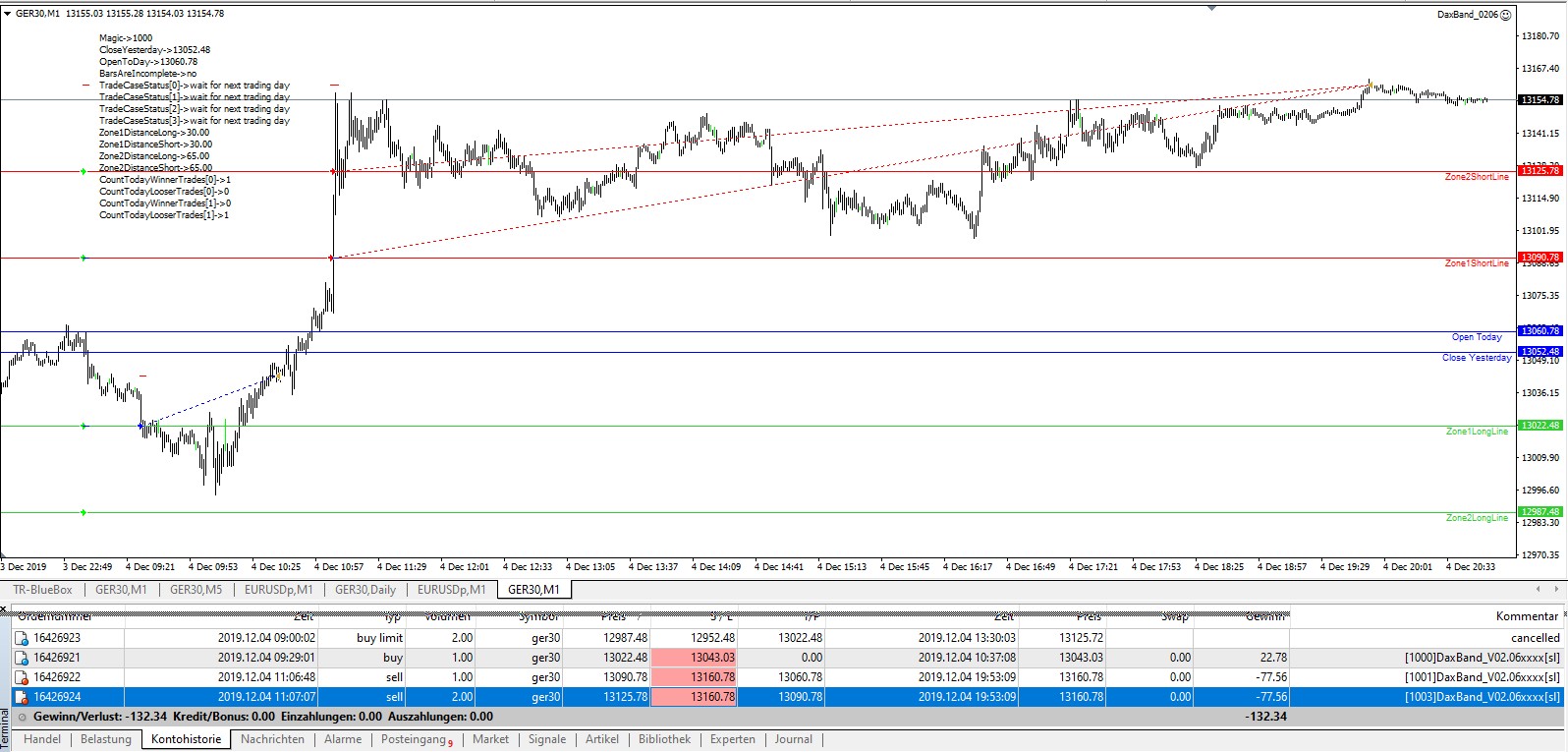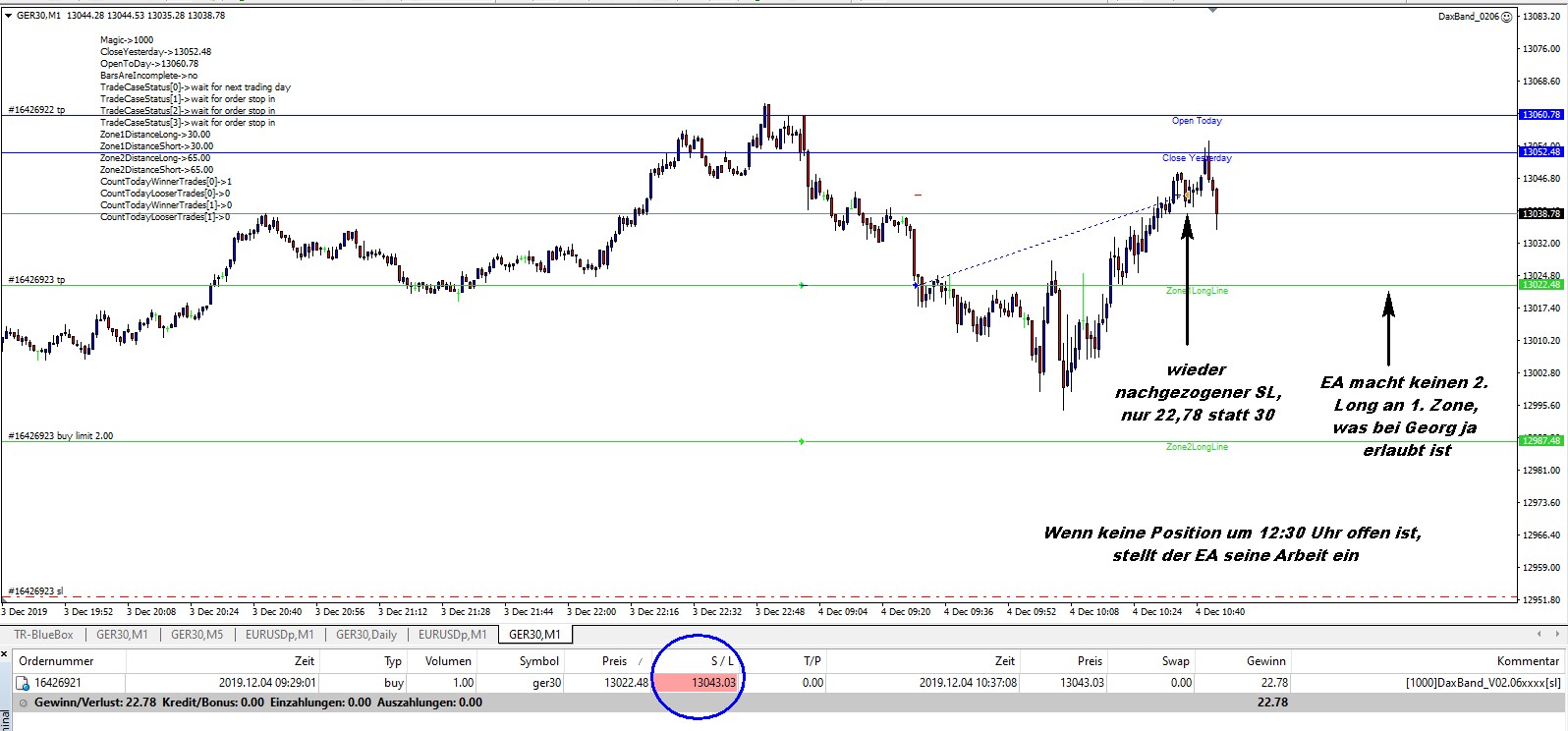 "Position Long am Eröffnungskurs um einen (1) Punkt ausgestoppt."