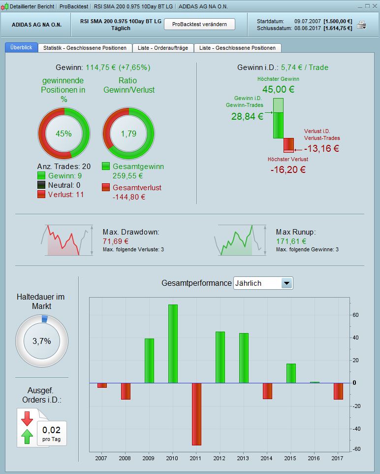 Endlich habe ich Urlaub und ich kann mich intensiver mit der RSI Strategie beschäftigen.