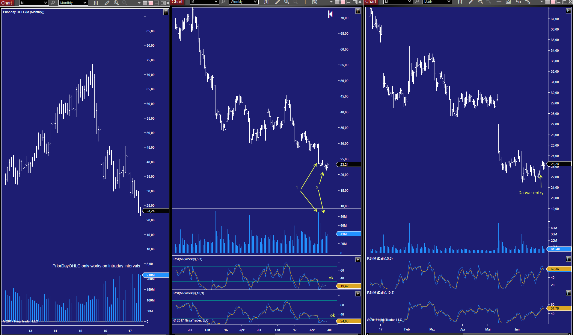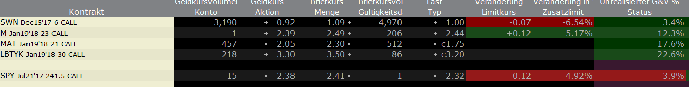 Wenn Du im Beleg unten schaust, bei M ist der Stike 23 und der Preis war zur Kaufzeit leicht darunter, also leicht aus dem Geld. Beim kaufen von Optionen achte ich auf ausreichend lange Laufzeit wegen dem Zeitwertverfall.