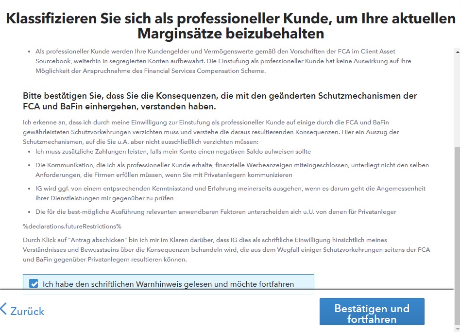 Das tun sie auch nicht. Bin mir nicht sicher, aber es kann ja sein, dass nur einige der Kunden aufgerufen werden sich als professioneller Kunde anzumelden. Mit meinem Bild unten habe ich nur darauf aufmerksam gemacht, dass nach Beantwortung der Fragen, keinerlei "Schmarrn" wie von dir erwähnt, gefragt wurden.
