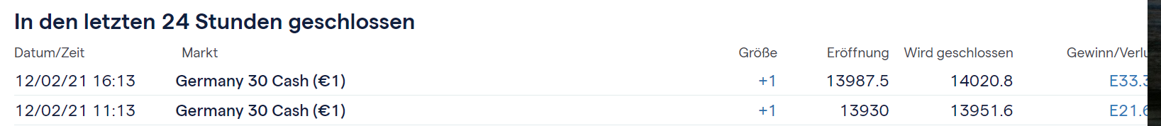 Beispiel gestern. Siehe vorletzter Beitrag. Die Festposition Short notierte morgens hoch im Gewinn und am Tagesende hoch im Verlust. Wichtig ist, dass mit zwei Long Gegenpositionen ein Gewinn von 55€ erzielt wurde. Siehe Anhang. -