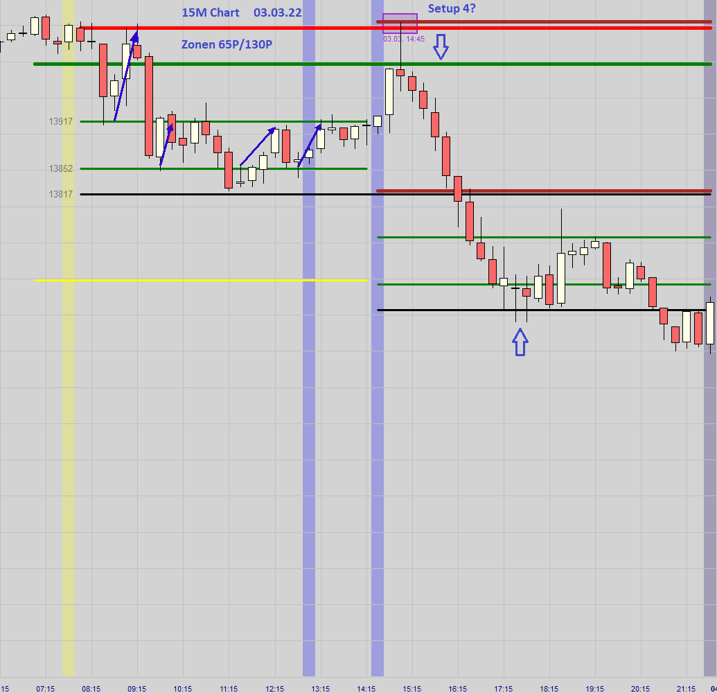 Der Chart von heute, den 03.03.22 (Mini-DAX). Erster Trade an Zone 1 Long, es ist schon erstaunlich, wie gut das funktioniert.