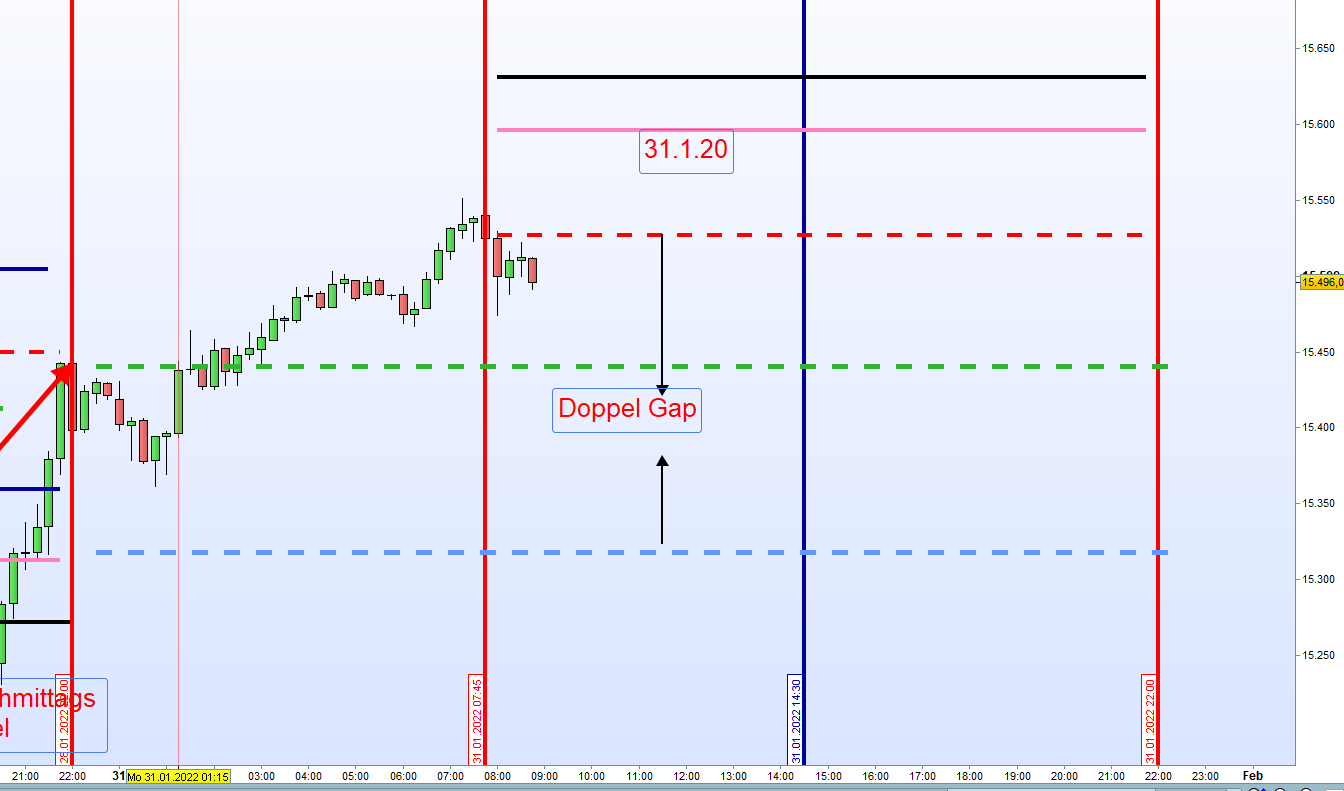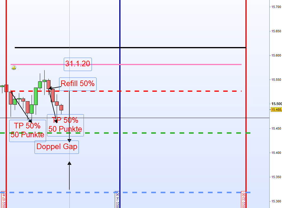 Ich hatte das Doppel Gap gesehen mit 199 Punkte und auch die volle 7:45h Kerze mit Handel in Richtung der Zonen.
