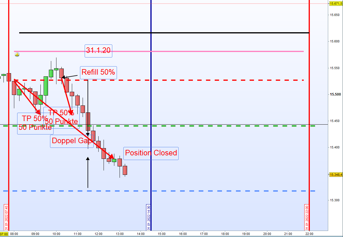 Heute war ein guter Tag und insbesondere der Nachmittag mit vier erfüllten Trades war erfreulich.