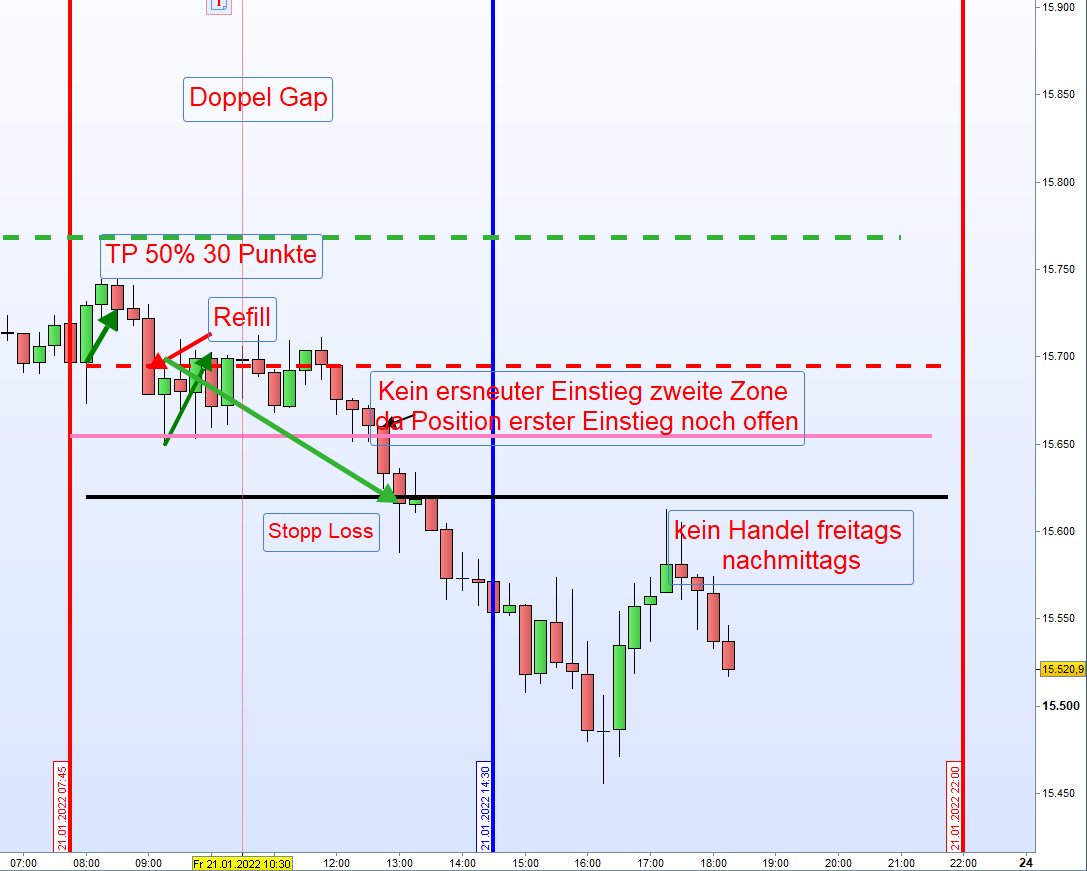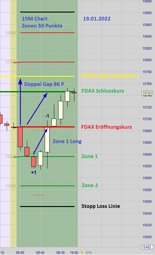 Das Gap ist heute geschlossen worden (FDAX Eröffnungskurs bis FDAX Schlusskurs) und die Zone 1 Long hatte ich gehandelt!