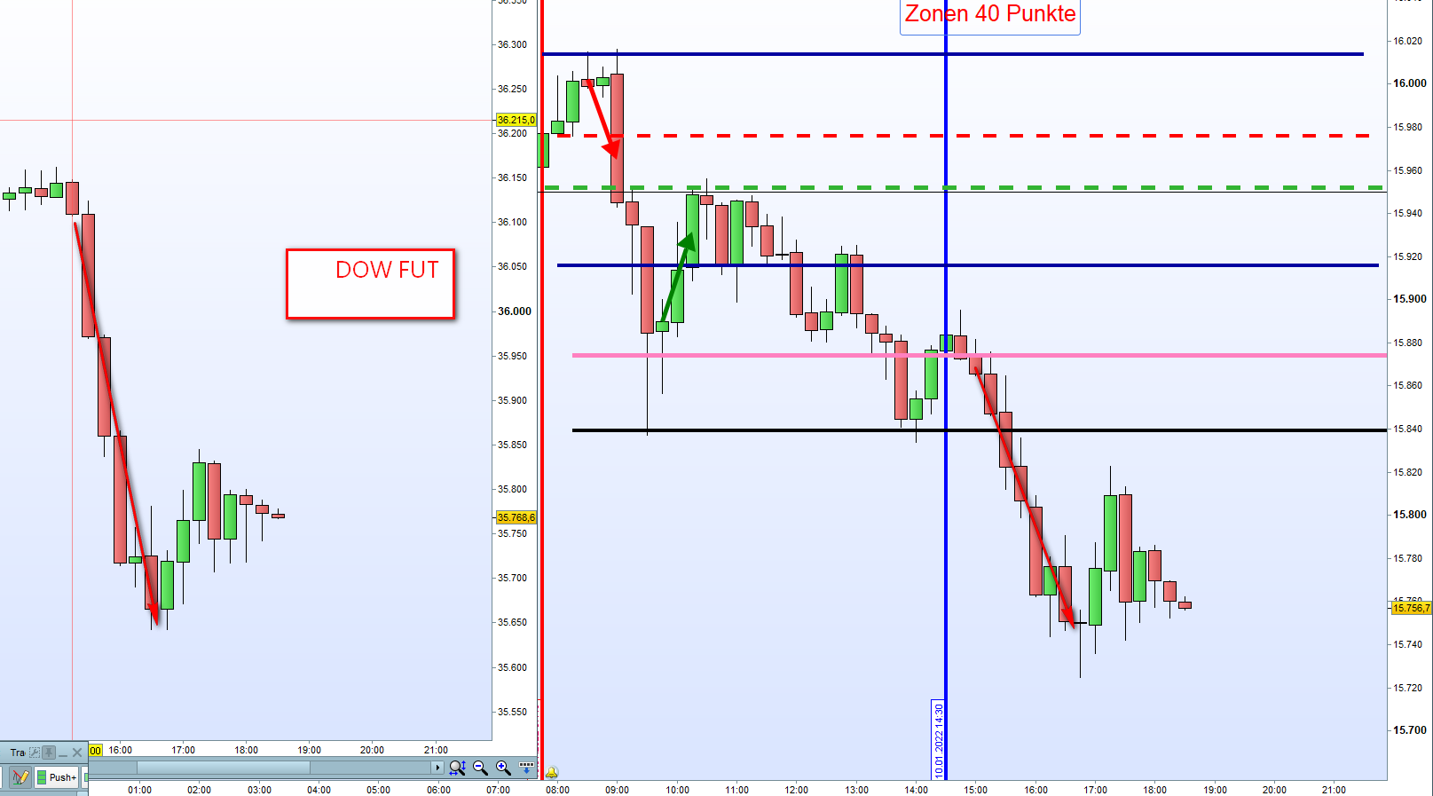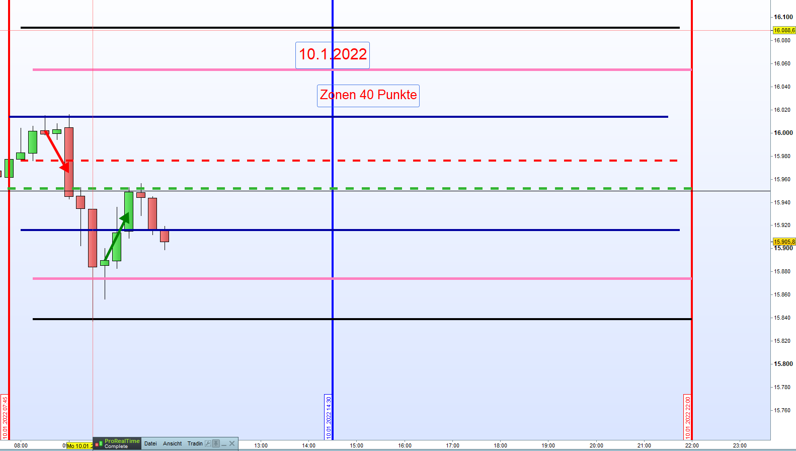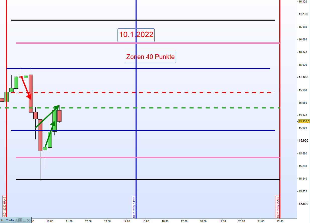 Ich bin heute um ca. 9:00 an Zone 1 Short eingestiegen und der erste Trade ist punktgenau erfolgreich gewesen!