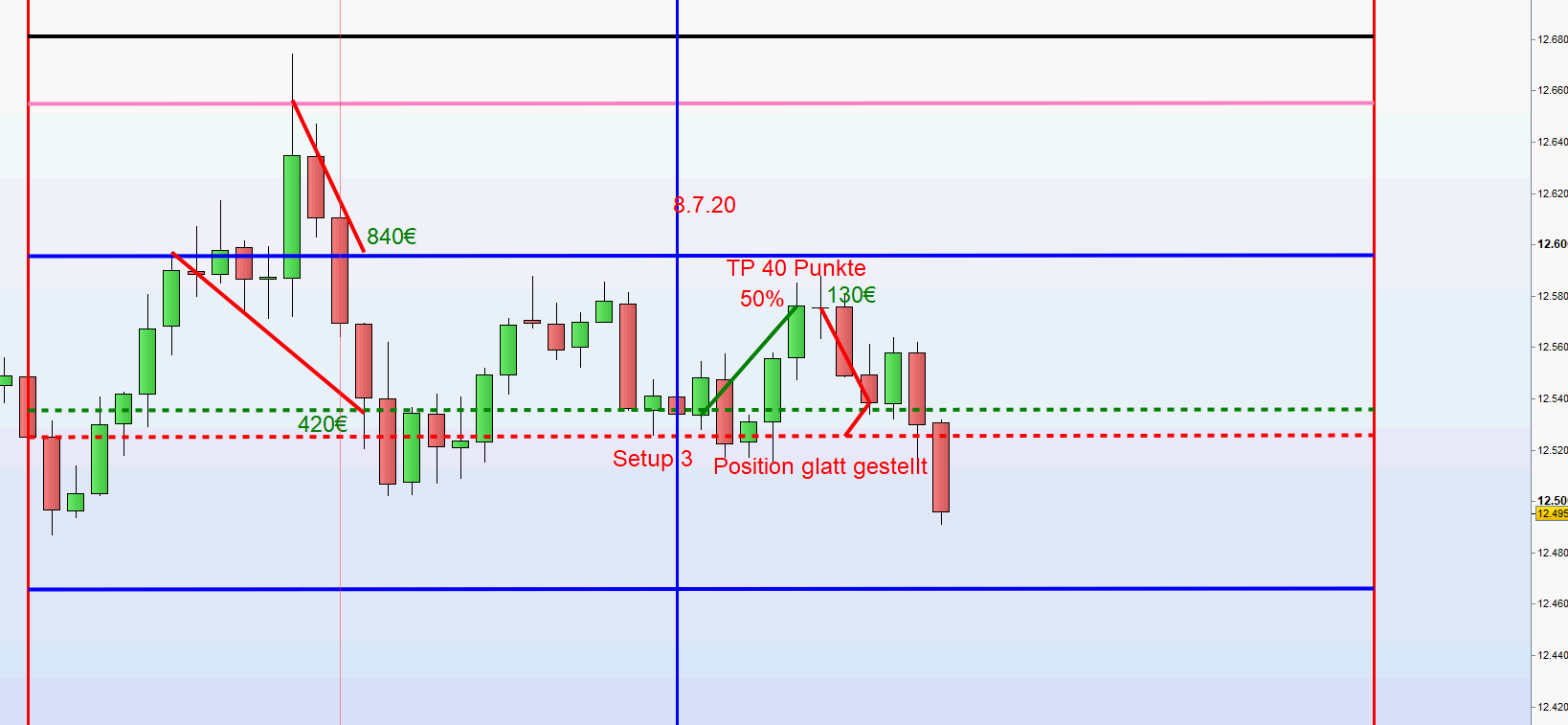 Besorge dir einen anständigen Broker mit korrektem Chart. Alarm und voreingestellte Limit order abdrücken.