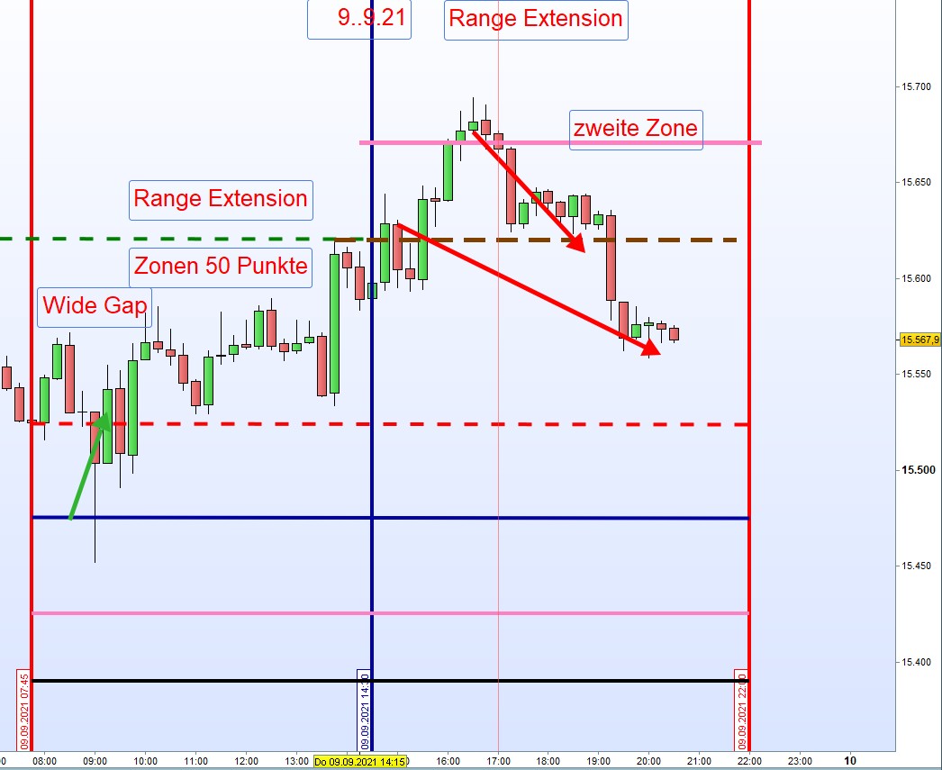 - nach 2 tieferen Schlusskursen in Folge sofort short einsteigen.