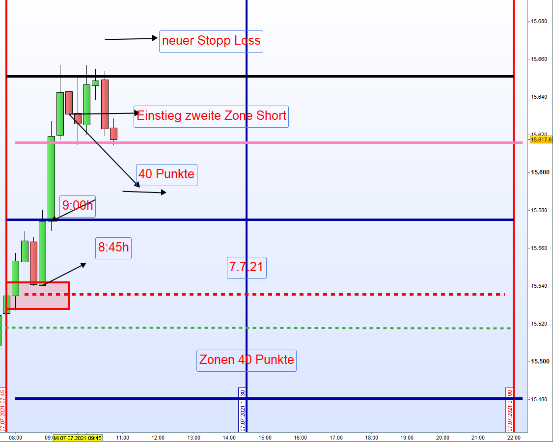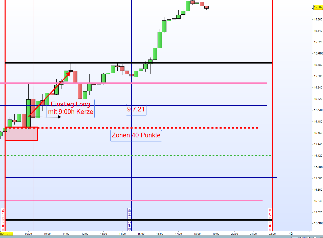 Nach den direkten Anstieg bei Zone 2 dann erst die Umkehrkerze abgewartet,