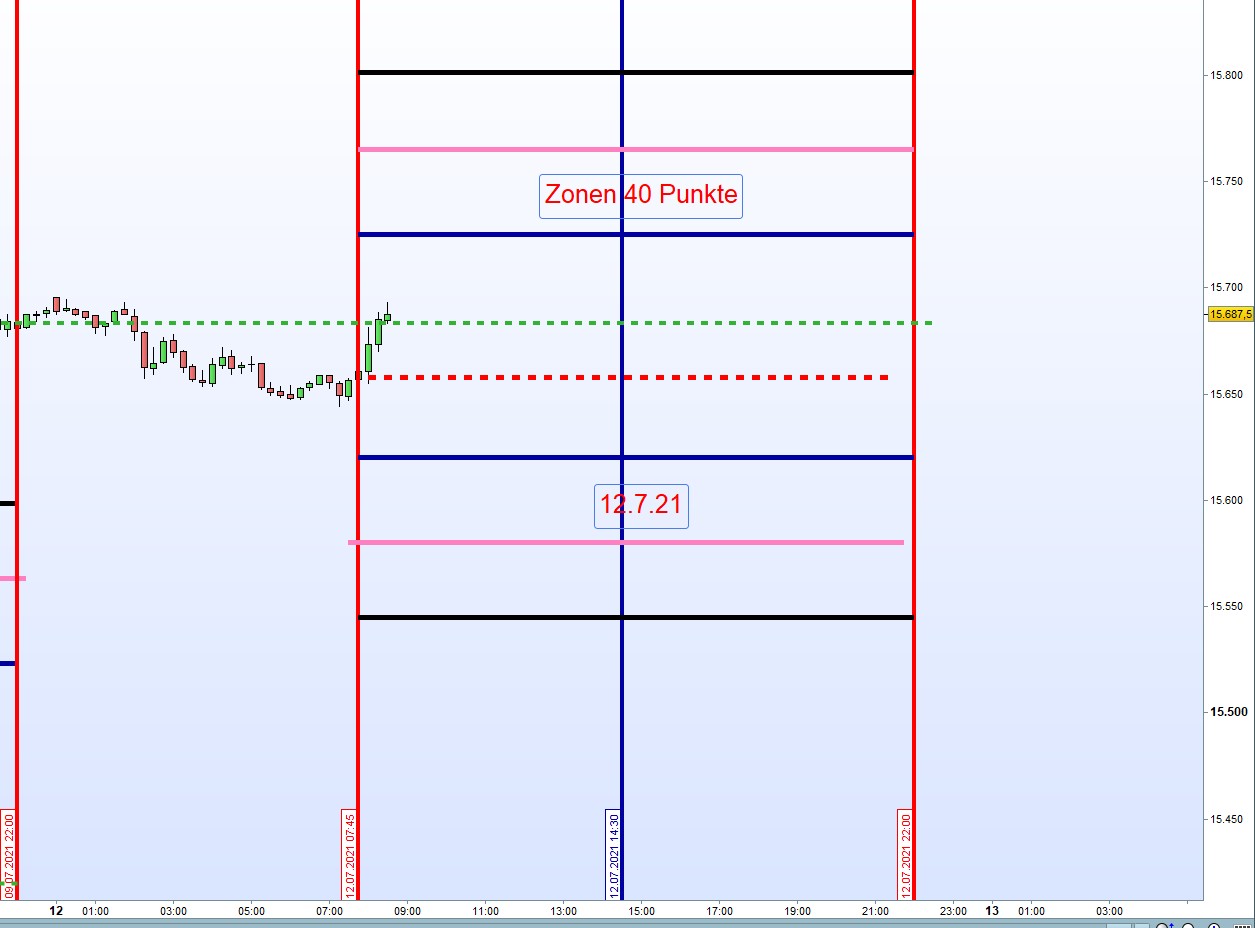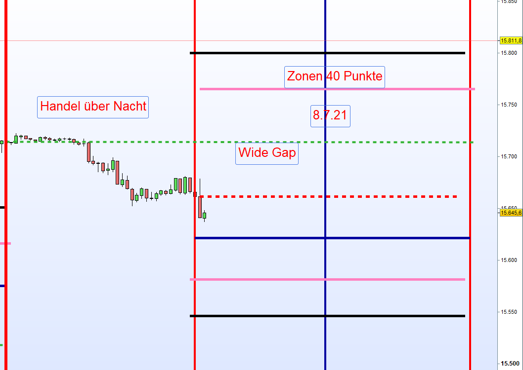 In letzter Zeit ist immer wieder zu beobachten wie wichtig die DAX Eröffnung um 9:00h ist. Man könnte sogar in die Richtung der Zonen handeln wenn man auf der anderen Seite auf Verdacht eine Gegenposition stopp sell oder stop buy aufbaut. Werner kennt diesen Handelsansatz.