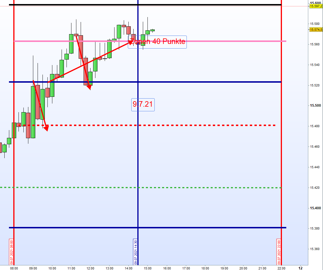 Chart 15min, Zonen 50CFD DAX: open8h u. close22h :IG Kassa 1Eur / Xetra 1730 u. Vdax-New : investing / DAX ATR 14 : Guidants L&SDax -