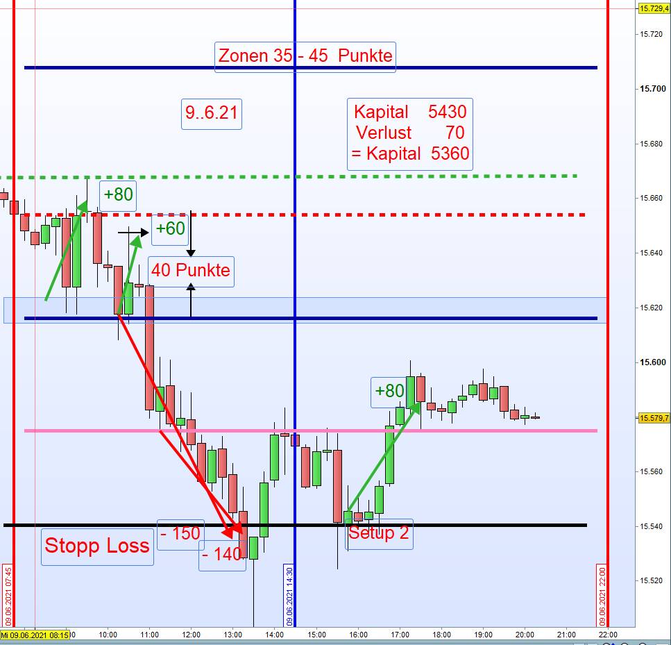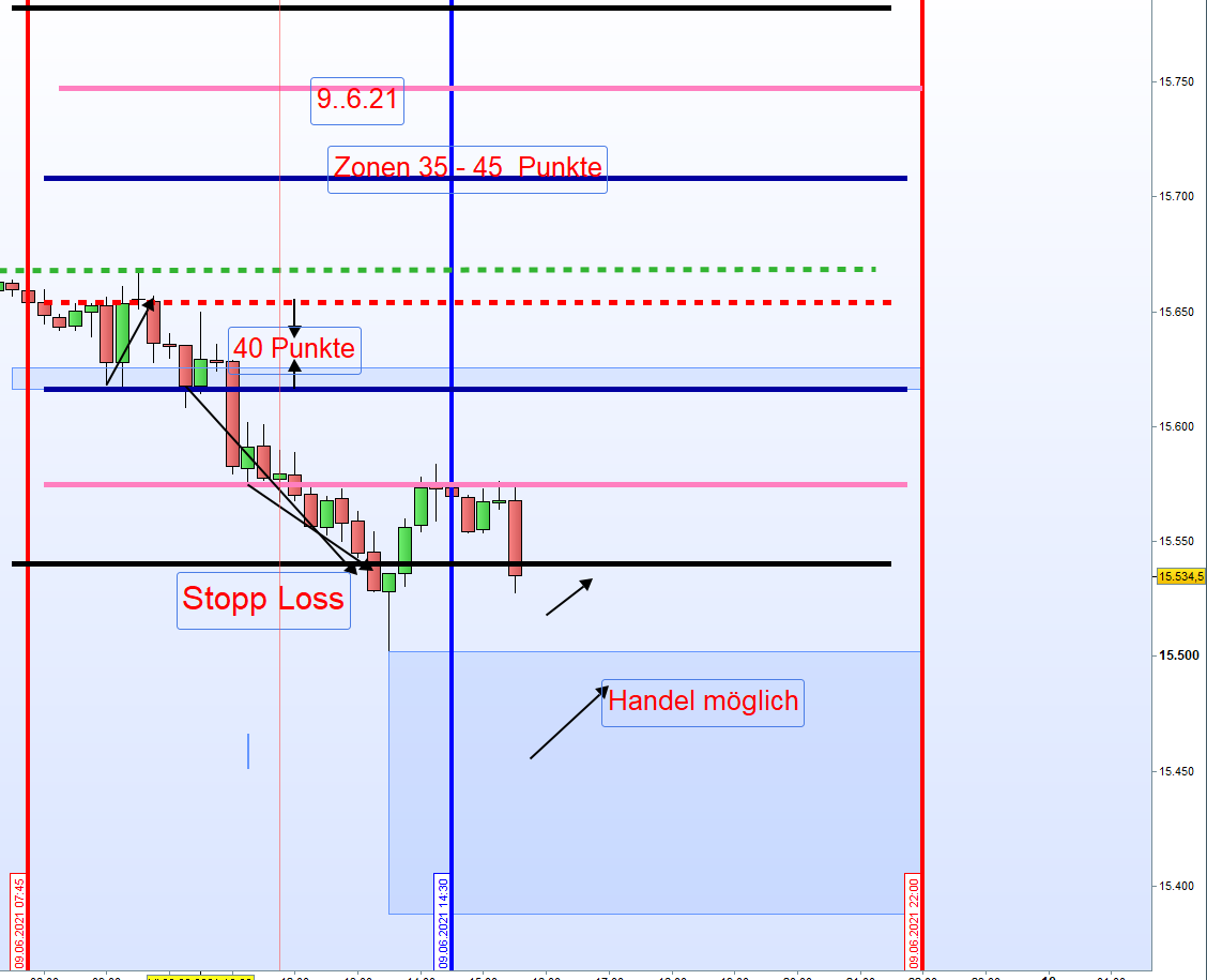 Wenn die Position schon mal 30 Punkte im Gewinn war, dann kommt SL auf Einstand.