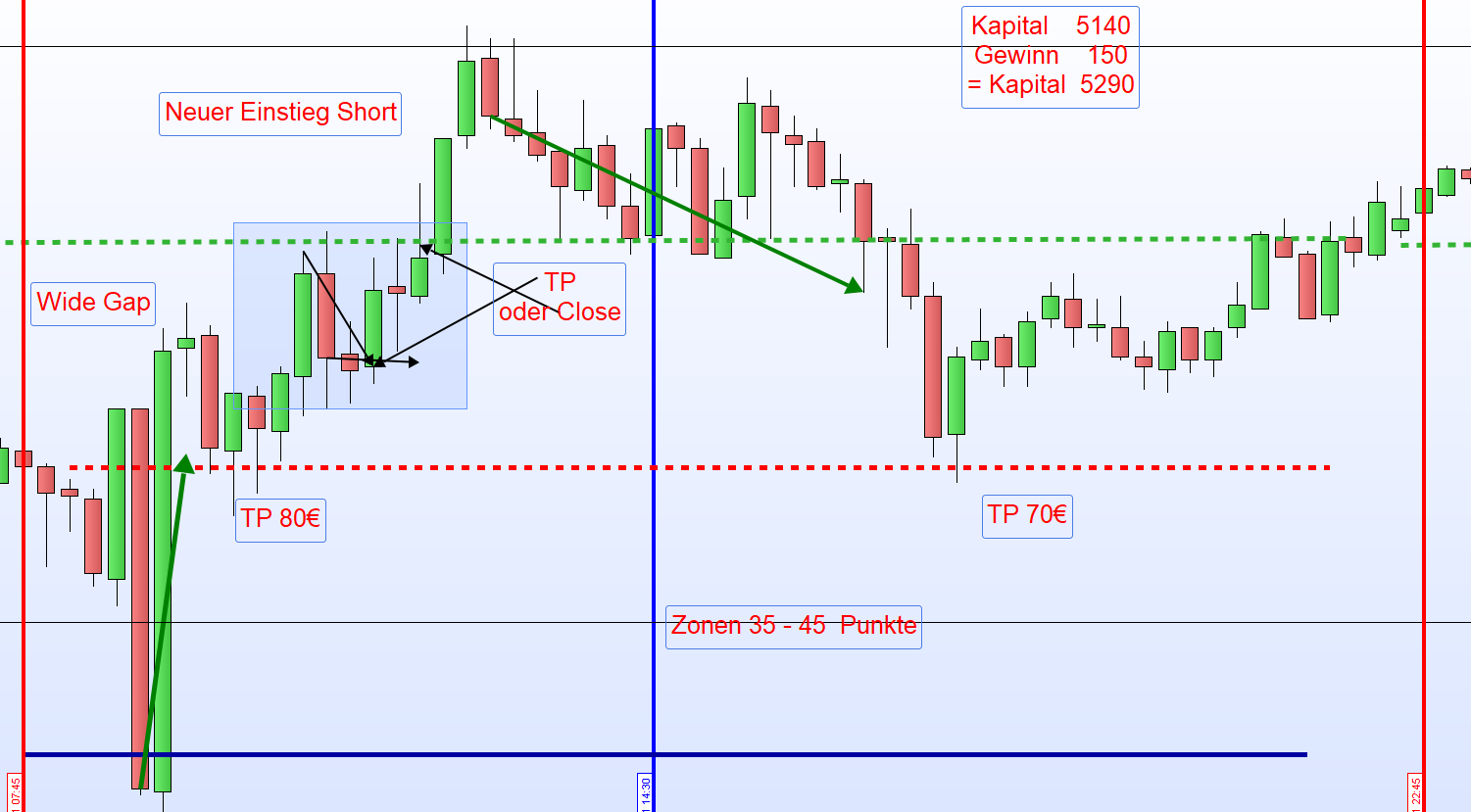 Die Gap betrug 30 Punkte und somit die erste Shortzone 70 Punkte über dem Eröffnungskurs. Ganz schön vielle