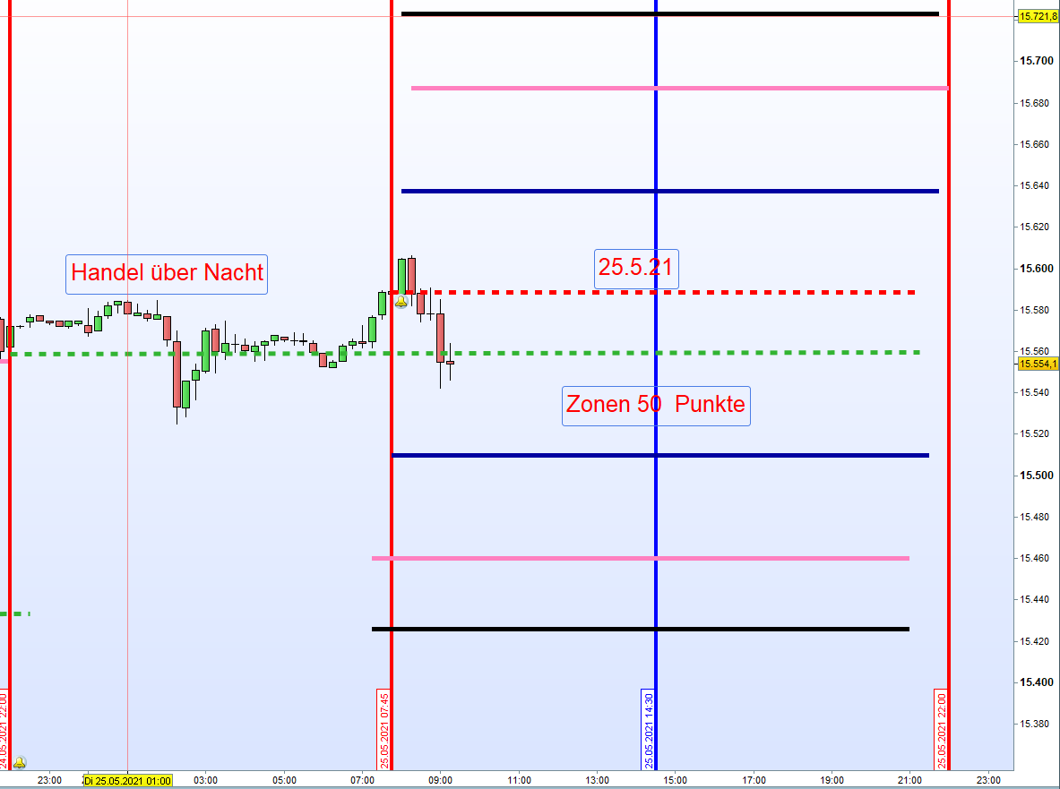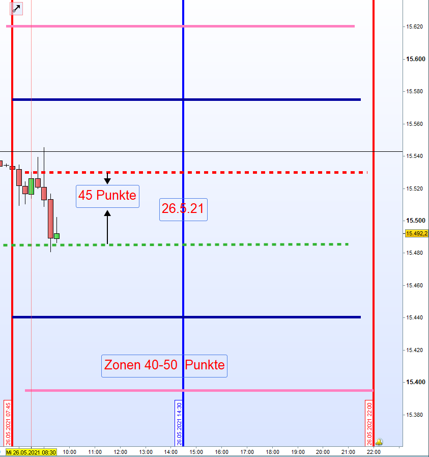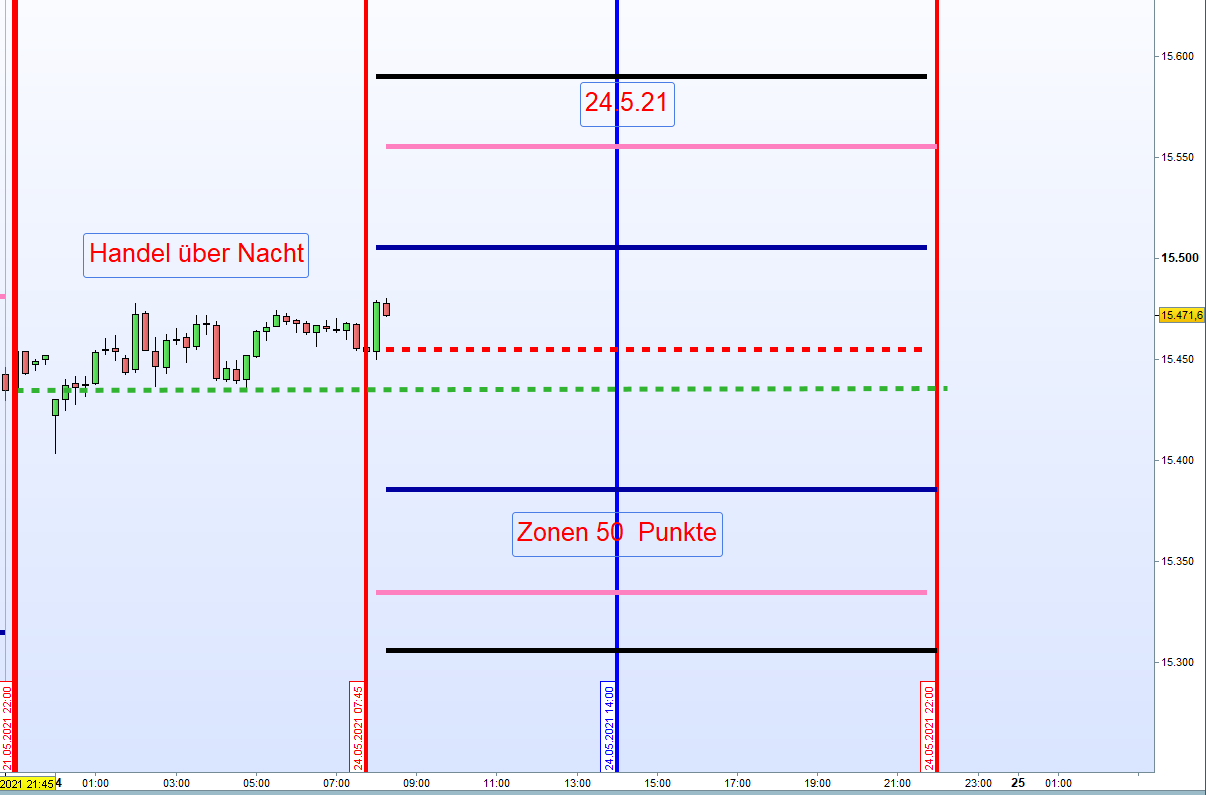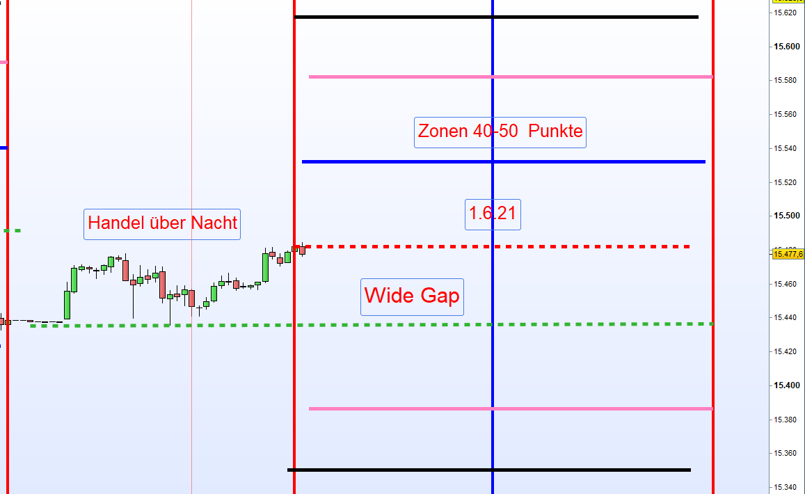 Wide Gap Wide Gaps sind Notierungslücken die nicht die Anforderungen einer Doppel Gap erfüllen jedoch eine Differenz von Close und Open von + 40 Punkten ausmachen. Gehandelt wird ab dem Vortagesschlusskurs, dann erste Aktionszone, mit dem Gewinnziel Eröffnungskurs um 8h. Zeitstopp kurz vor 14:30h wenn Position im Verlust. Es ist ein Revers Gap Close Handelsansatz. Notiert de VDAX-NEW über 20 wird der Handel der Wide Gap erst nach einer Mindestlücke von 70 Punkten in Erwägung gezogen. Kein Wide Gap Handel wenn VDAX-NEW über 30 notiert.
