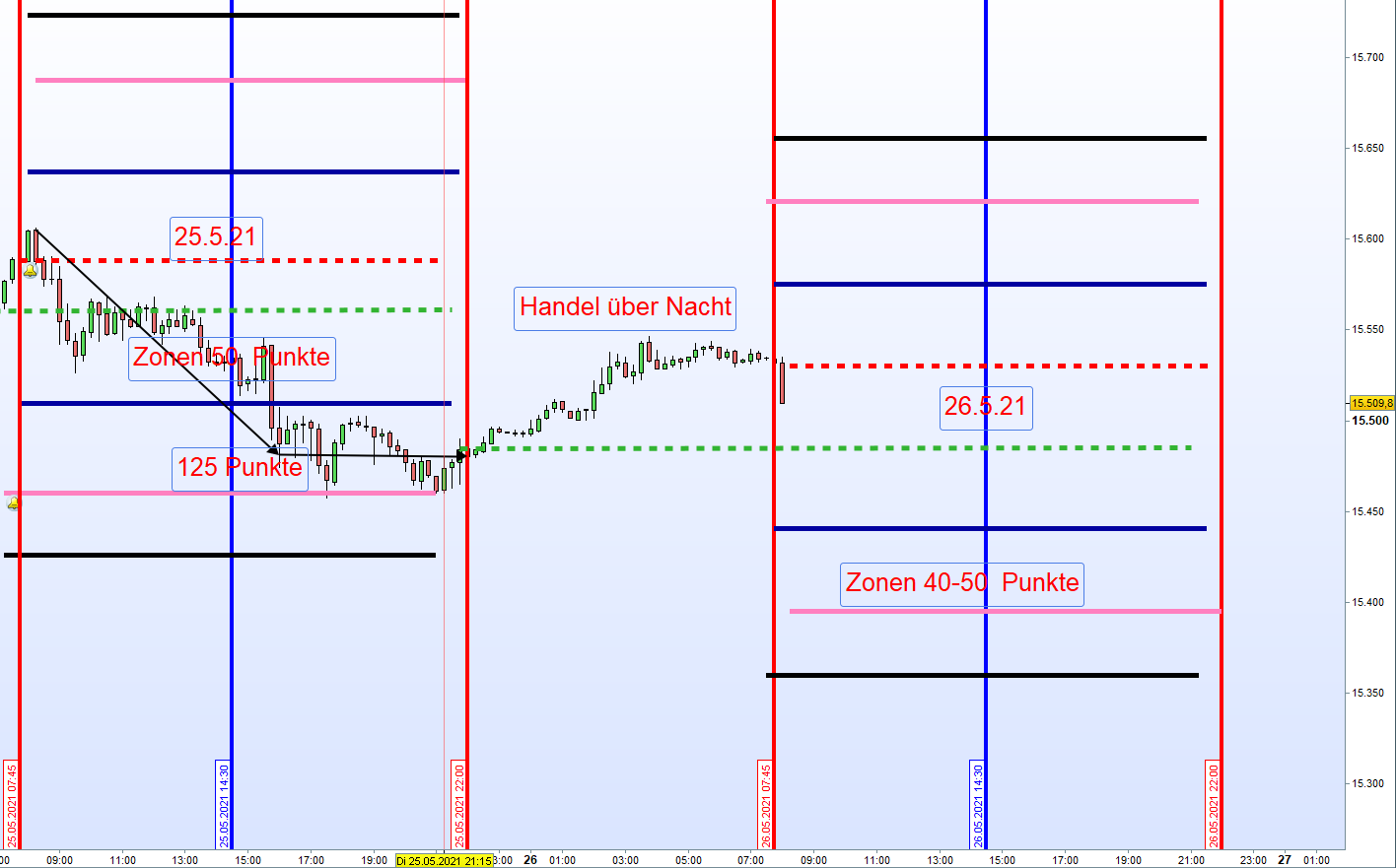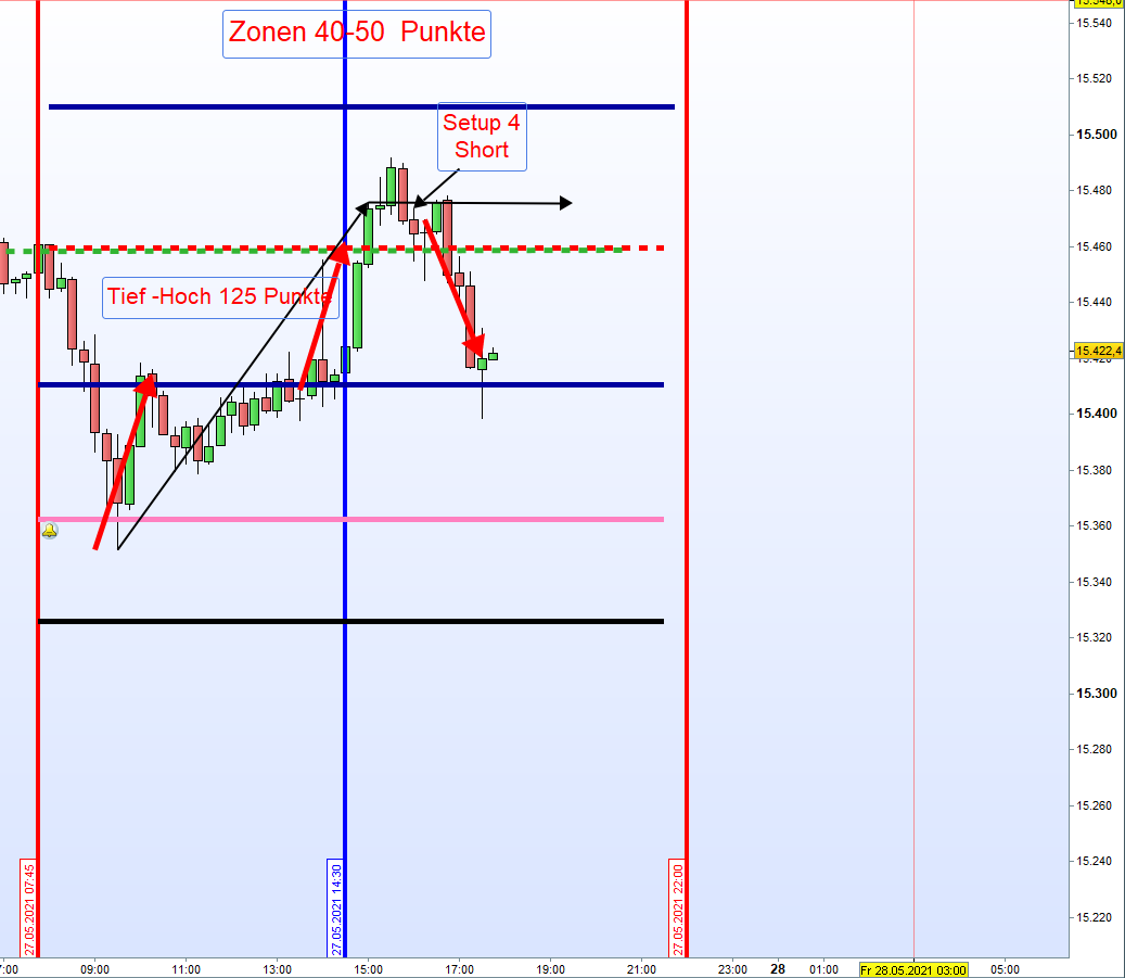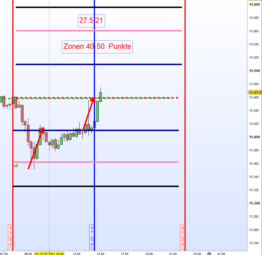 Wide Gap Wide Gaps sind Notierungslücken die nicht die Anforderungen einer Doppel Gap erfüllen jedoch eine Differenz von Close und Open von + 40 Punkten ausmachen. Gehandelt wird ab dem Vortagesschlusskurs, dann erste Aktionszone, mit dem Gewinnziel Eröffnungskurs um 8h. Zeitstopp kurz vor 14:30h wenn Position im Verlust. Es ist ein Revers Gap Close Handelsansatz. Notiert de VDAX-NEW über 20 wird der Handel der Wide Gap erst nach einer Mindestlücke von 70 Punkten in Erwägung gezogen. Kein Wide Gap Handel wenn VDAX-NEW über 30 notiert.