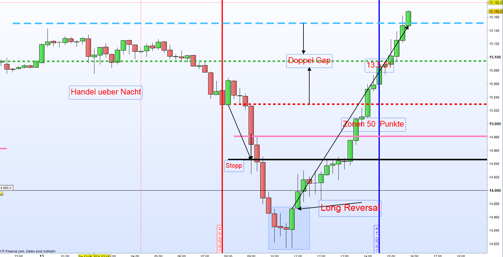 Dieser Reversal ist zwar morgens kein Bestandteil der Strategie aber ein Leckerbissen für den geübten Trader.
