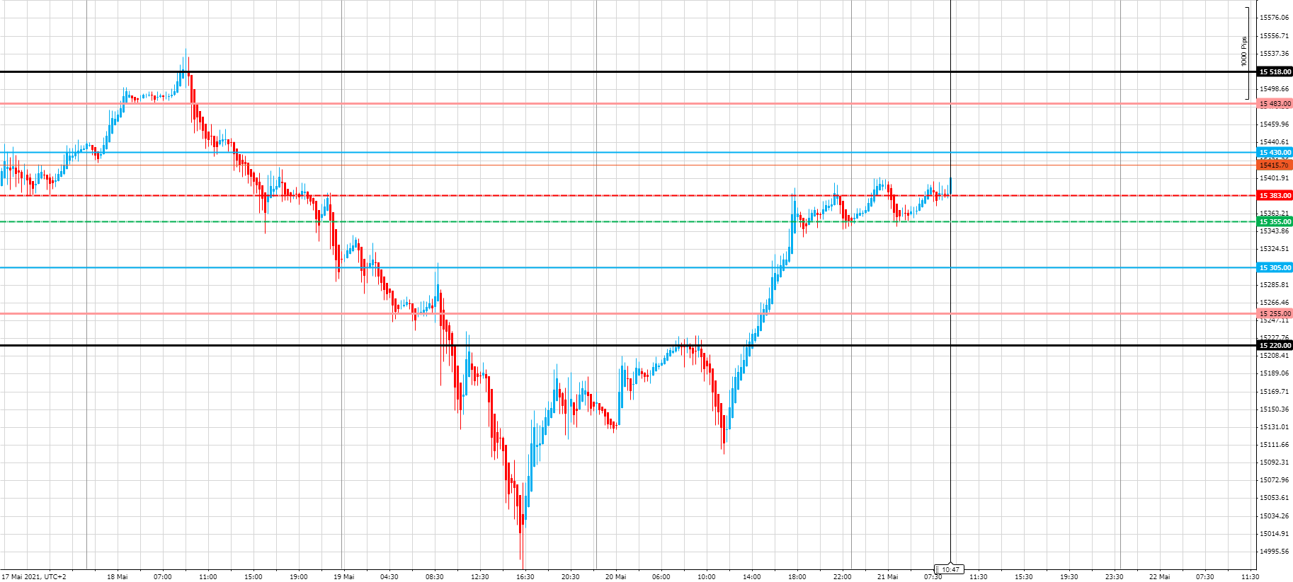 wobei ich gestehen muss, von dem Bild her hätte ich mich an dem ersten Dip um 15.00 auf ein Setup 4 (Dreht am Tiefpunkt) eingelassen mit der schmalen roten Kerze und der starken grünen als Umkehrung... und wäre dann reingefallen