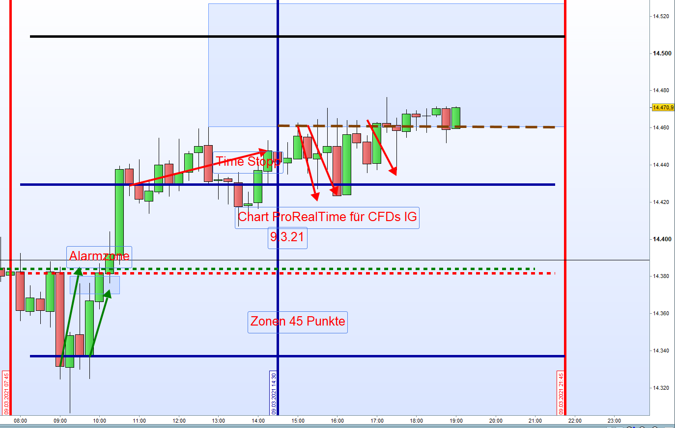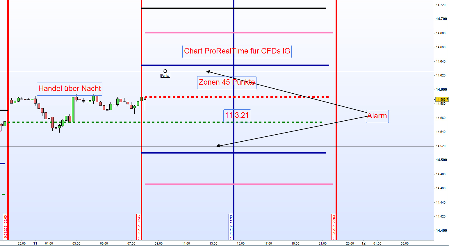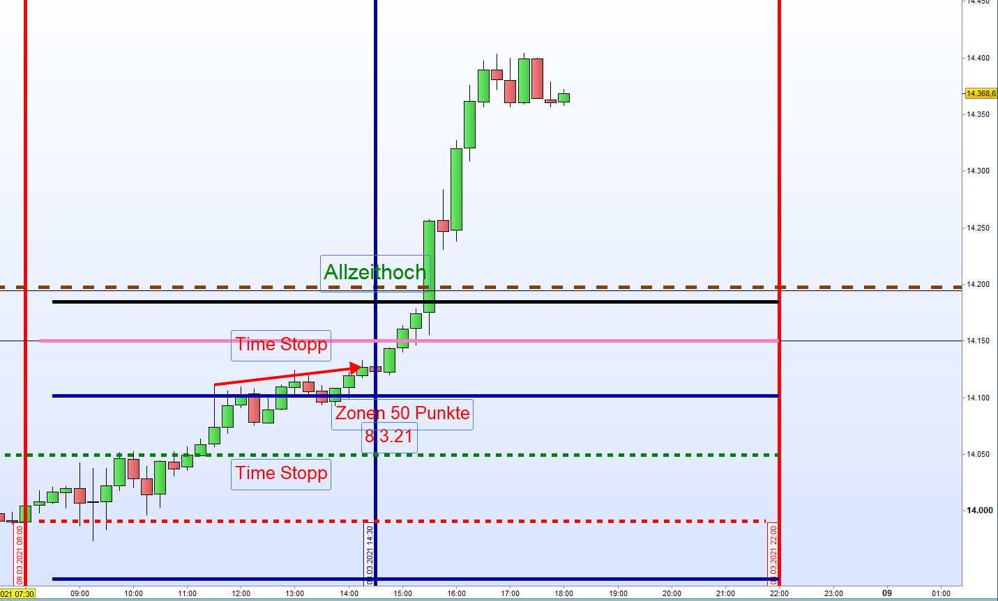 - Doppelgap: Positionseröffnung vom Eröffnungskurs in Richtung Schlusskurs Vortag. Danach normaler Zonenhandel.