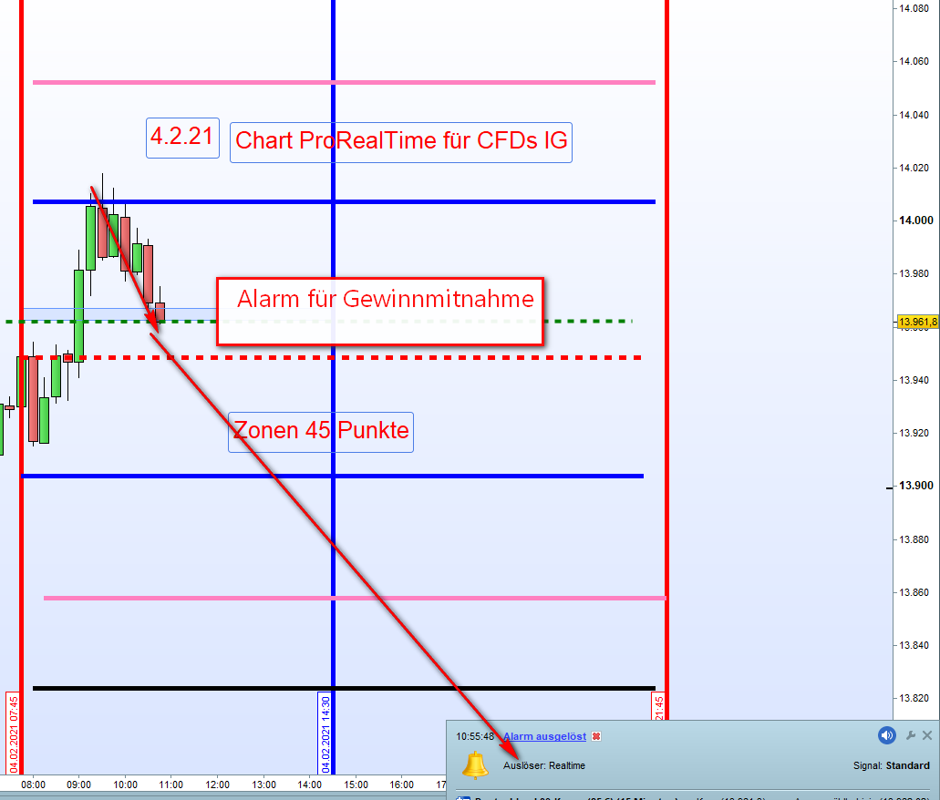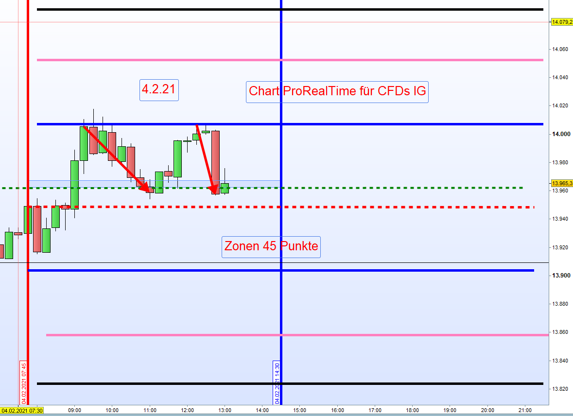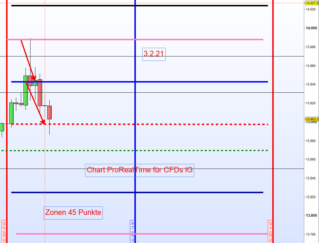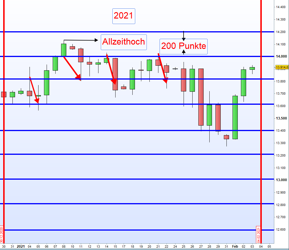 Angefügt Chart für heute und den Tageschart 2021 eingeteilt in Zonen von 200 Punkten.