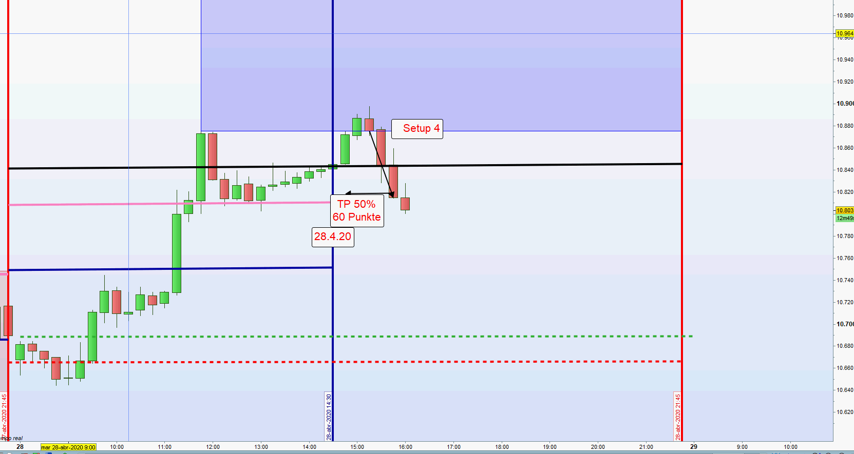 Unter Berücksichtigung der Charttechnik und dem Prinzip des Höchstverlustes bis 14:30h wäre der Verlust