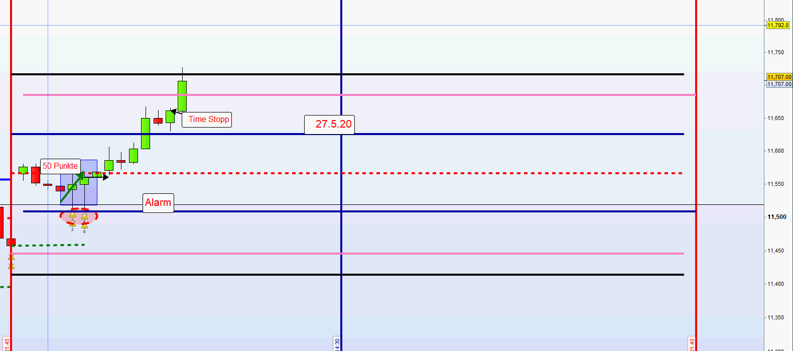 Handel nach sich ändernden Vorgaben. Als der Kurs noch unter der ersten Zone wurde darauf hingewiesen: