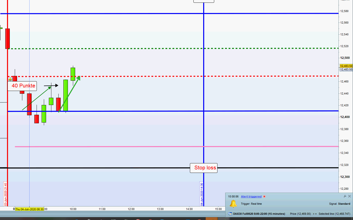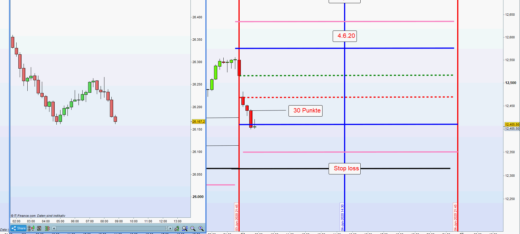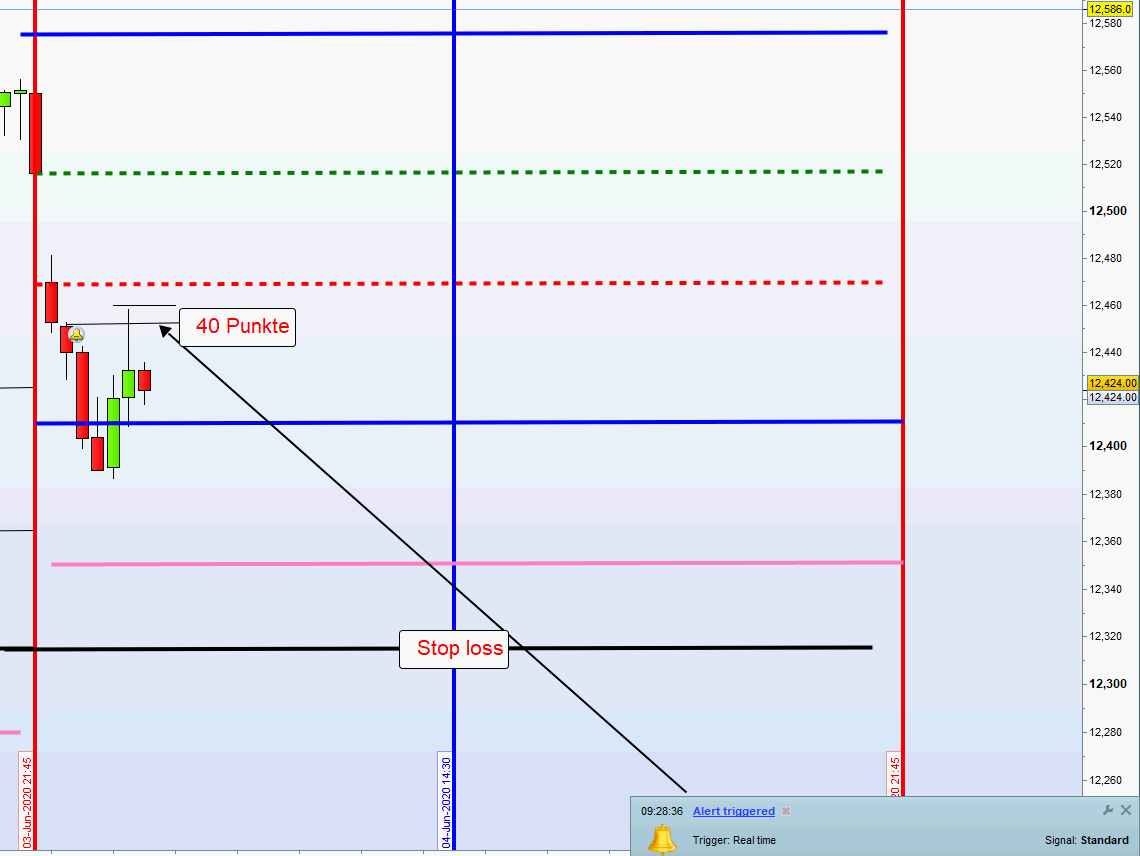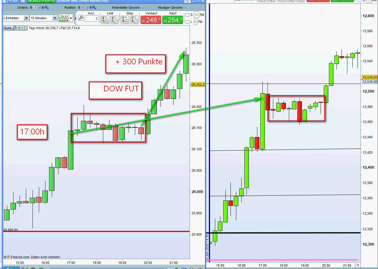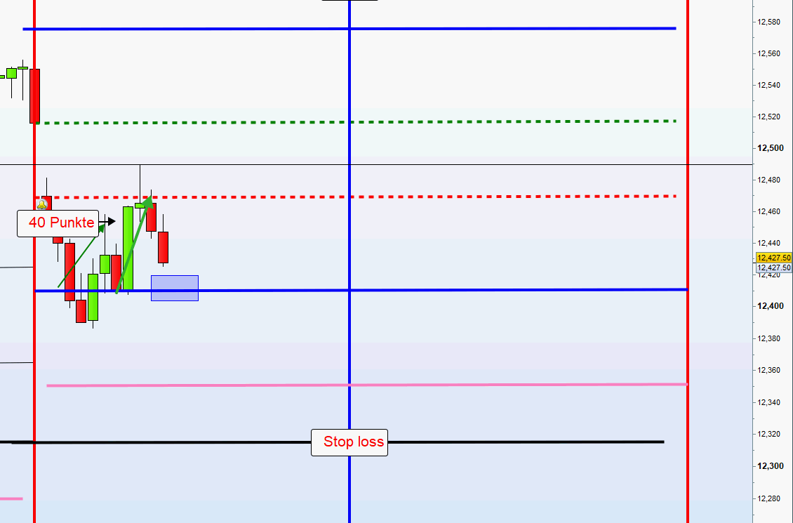 Manchmal bin ich mir zu unsicher und nimm die Angsthasenvariante mit einer Umkehrkerze entweder M5 oder M15,dabei habe ich immer ein Auge auf dem Dow, bei der heutigen 1 Zone Short sah der Dow für mich noch
