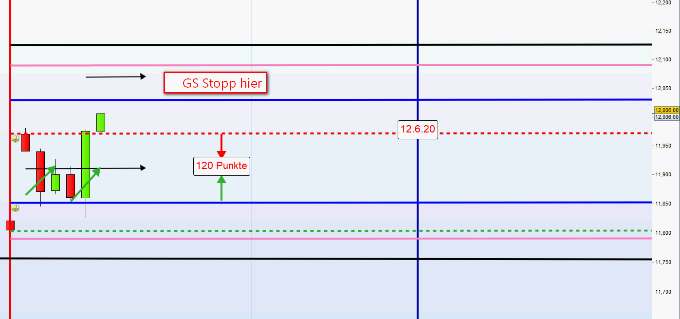 Wieso Zonenhandel? Nun, aus meiner Sicht hat der FDAX über Nacht bereits 150 Punkte zugelegt und nach oben sind bis zum Stopp Loss weitere 155 Punkte notwendig.