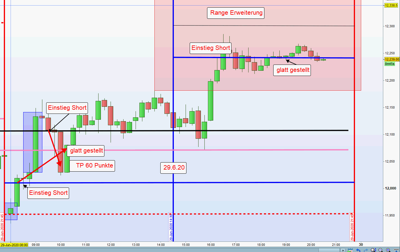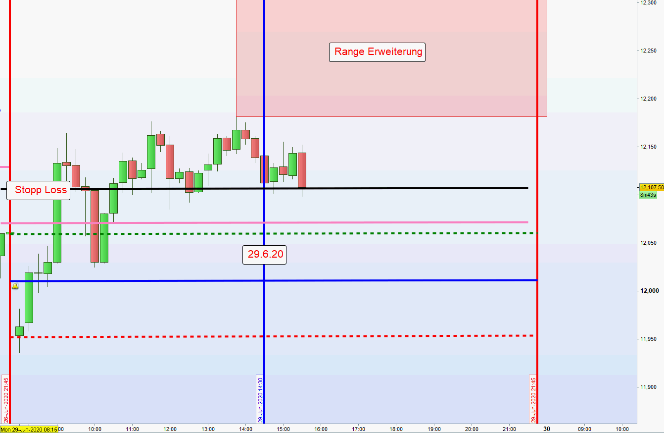 Danach ist davon auszugehen, dass sich der Tagestrend in gleicher Richtung fortsetzt und eine noch offene Position wird glatt gestellt.