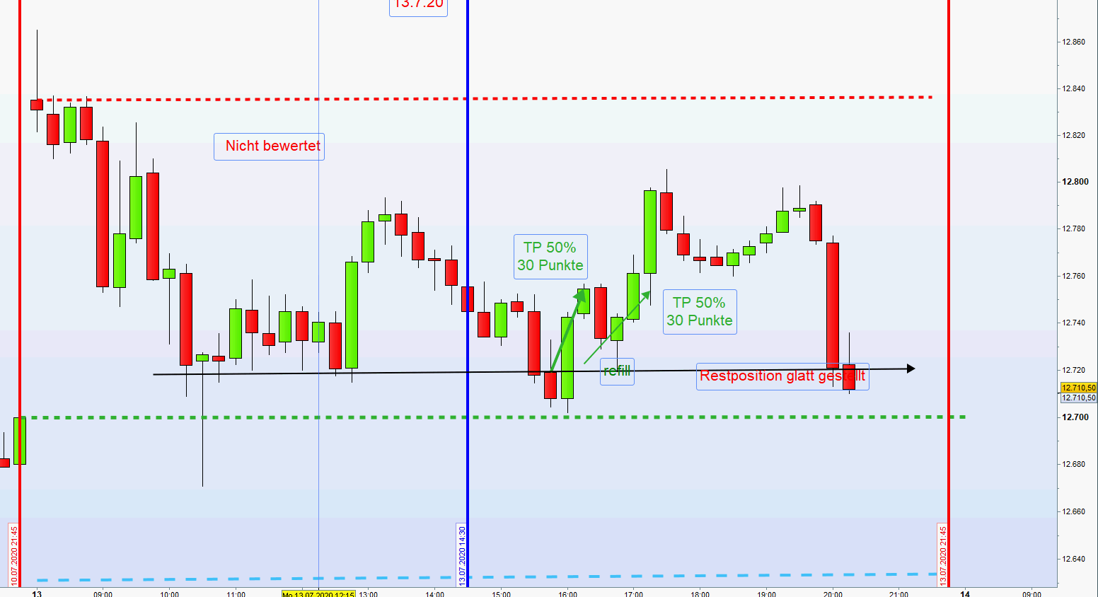 nur 30/35 Punkte weit und die ersten Kerzen nach Eröffnung um 8:00h auch sehr weit sind wurde auf den Handel bei einem Monster Gap verzichtet.