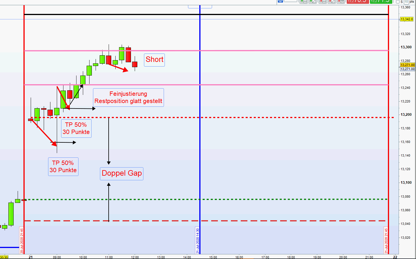 seh ich normalen Zonenhandel, Vdax bei exakt 25, ich entscheide mich für 50er Zone und justiere um 9.30 nach