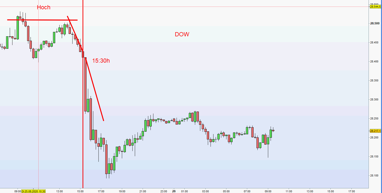 Diese Bewegung hätte ich korrekt als early Breakdown darstellen können, will aber Euch nicht strapazieren. Korrelation DOW / DAX ist ein Kapitel für " Hochbegabte" -