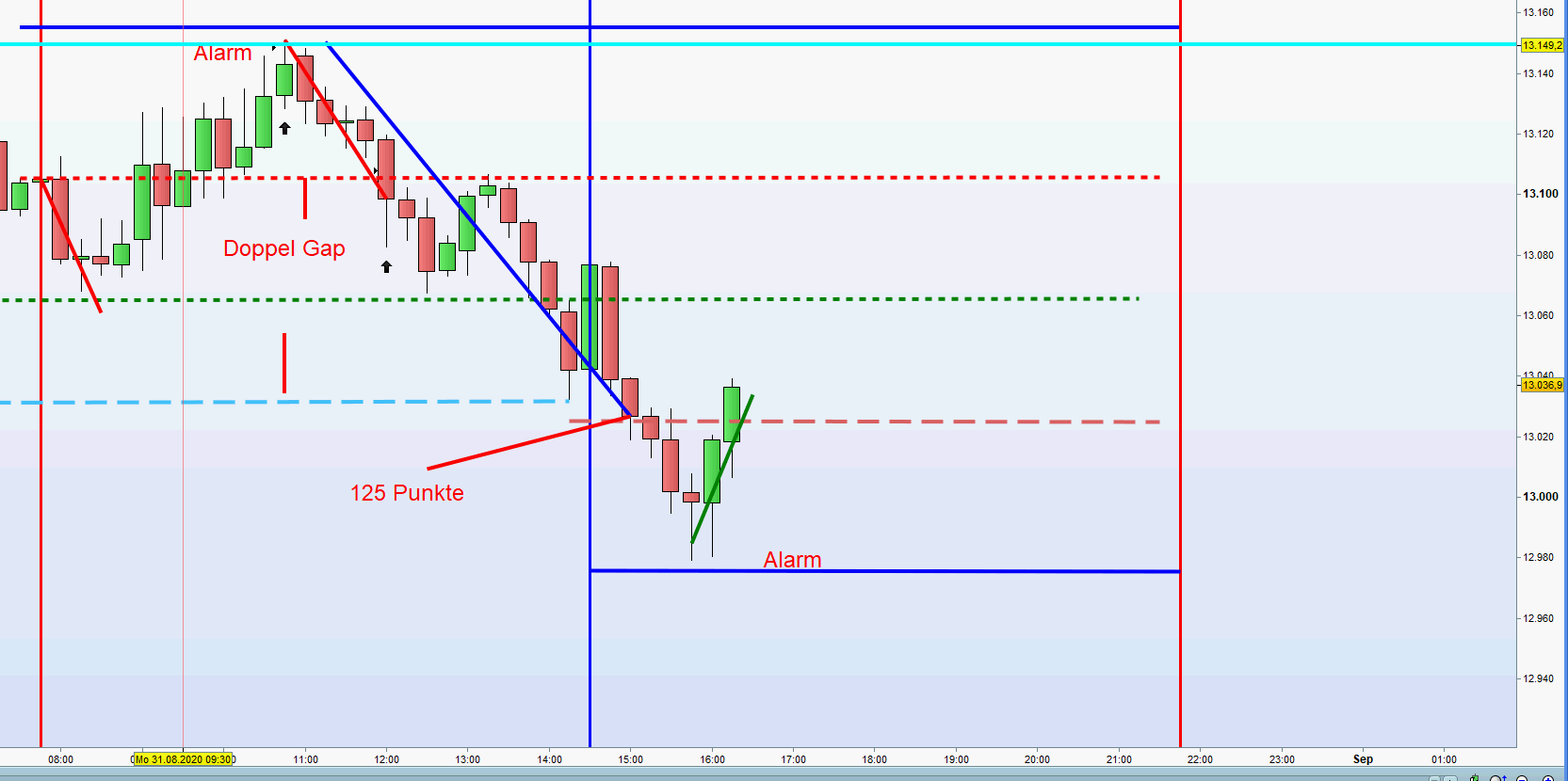 Rangeerweiterung Zone 1 bei 12982 Einstieg Long gehandelt und +30 Punkte geschlossen -