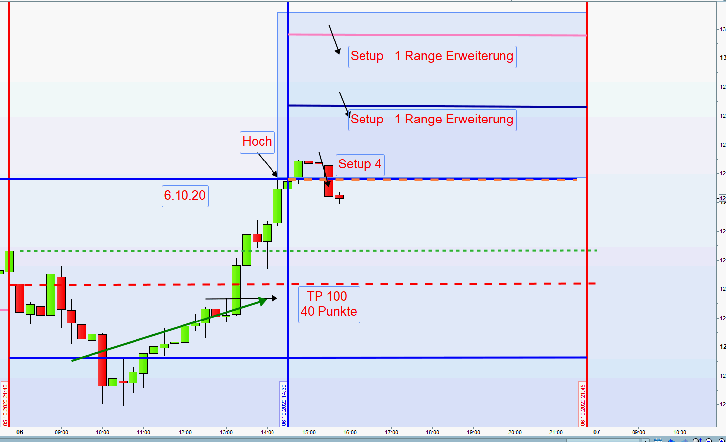 WideGaps sind Notierungslücken die nicht die Anforderungen einer DoppelGap erfüllen jedoch eine Differenz von Close und Open von + 40Punkten ausmachen.