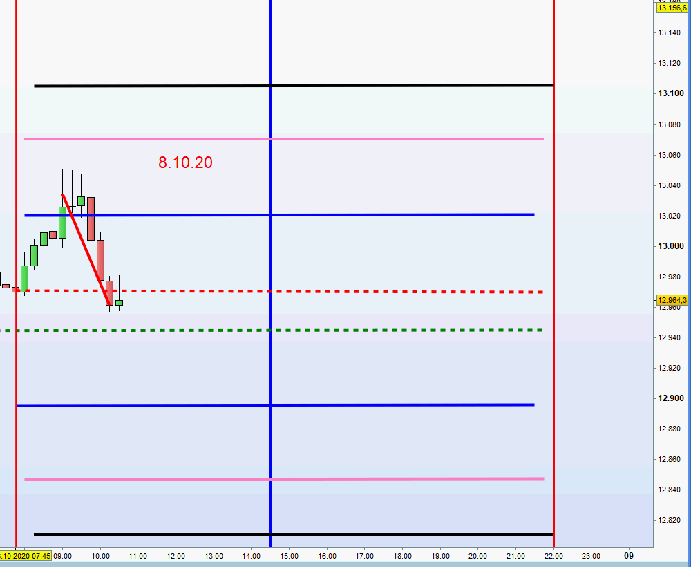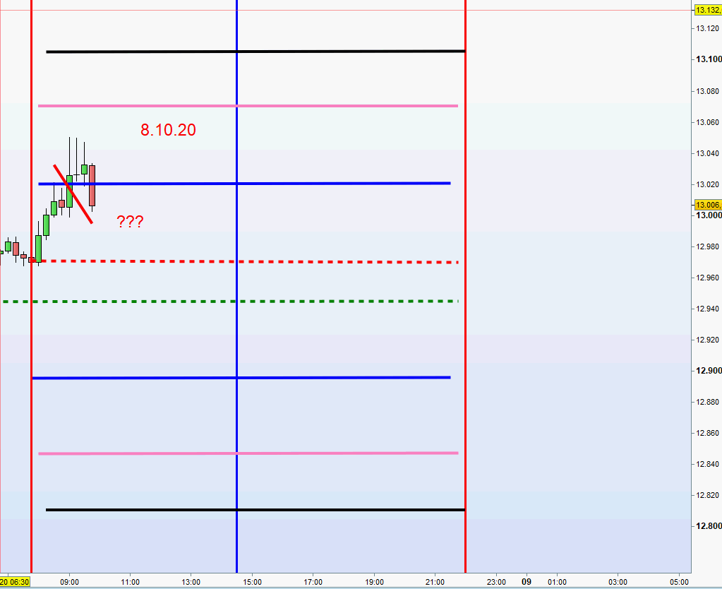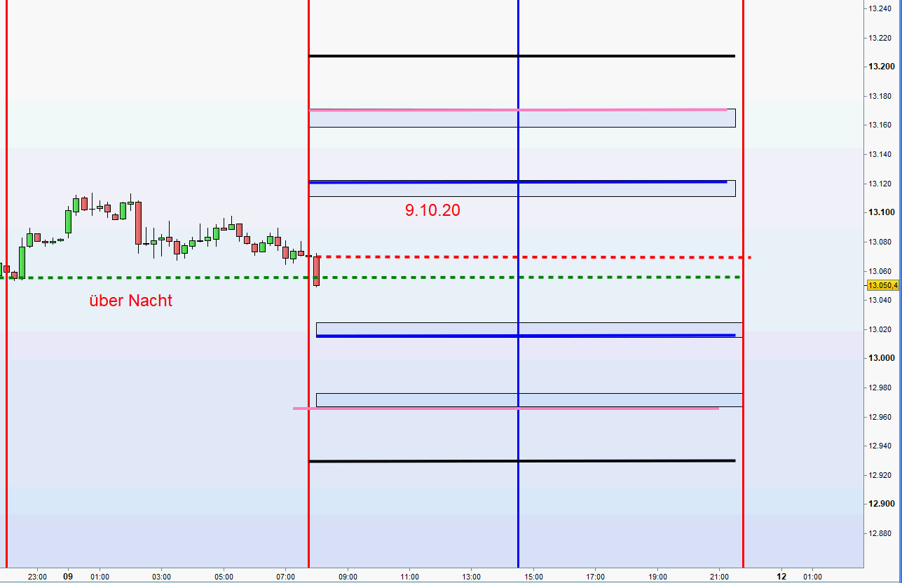 gestern machte er das höchstre hoch von der range am morgen um 9:05 preis 13033.5 ab da rechnete ich 50 punkte hoch also komme ich auf 13083.5 um 16:30 kam er dann hoch zur 1 zone deshalb sagte ich setup 1 nur weiss ich nicht ob ich dann wegen dem setup 2 und setup 1 doppelt rein muss weil es fast exakt an gleicher stelle war.
