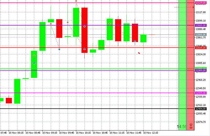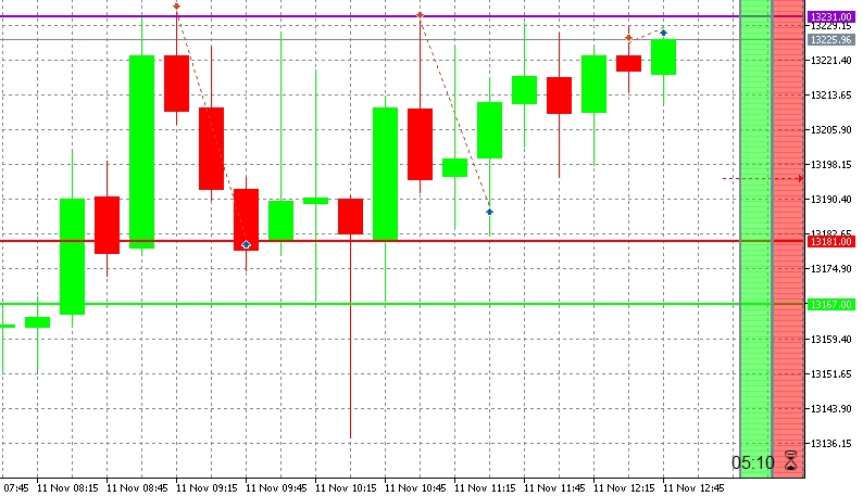 da heute morgen keine Kerze unter dem Open schloss, habe ich mich für die Anpassung der Aktionszonen entschieden und bin bei einer roten 5-Minuten-Kerze short eingestiegen. Das war somit als Zone 1 short bestimmt. Der Rest ergibt sich aus dem V-Dax, der 50er Zonen vorgibt. Damit waren gute Gewinne möglich. -