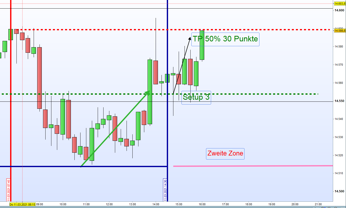 Warum so erfolgreich? Einstiege, außer Setup 3, finden alle an den Extremen der Intraday Trading Range