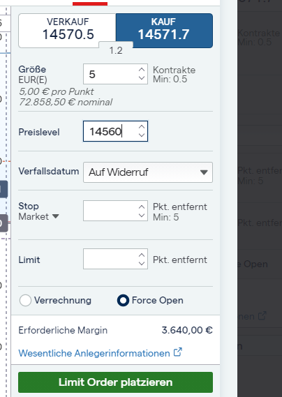 nachmittags ab 14 Uhr Handel Setup 3 bei 14660 Hoch bei 14707 ergo auch gute 40 Punkte